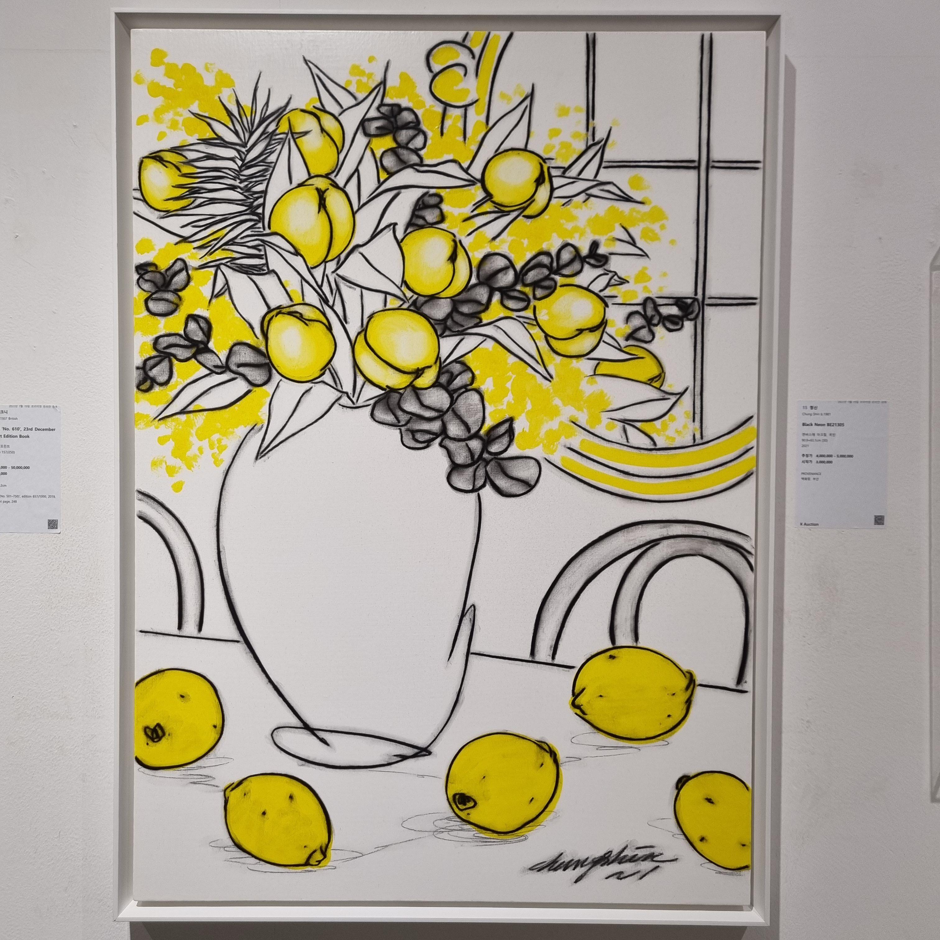 개인전에 작품을 구매하려는 사람들의 열정에 밤샘 텐트족까지 등장해 이슈가 됐던 청신의 '블랙네온'시리즈의 작품도 여전히 출품되었습니다.