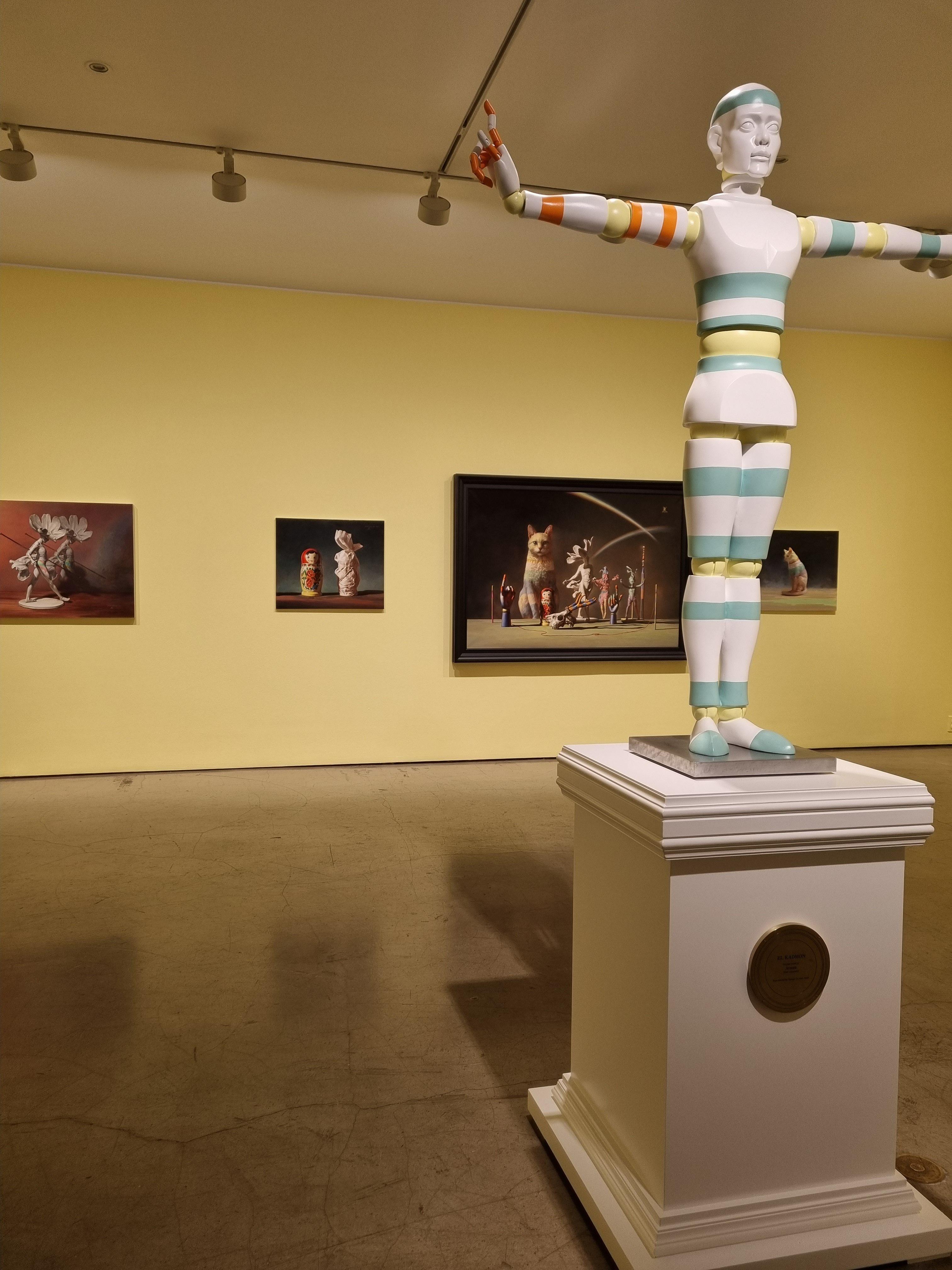 1층의 전시장 한 가운데 있는 조각 <엘카드몬>은 소설 <라포르 서커스>와 <두 개의 깃발>에 등장하는 목각인형으로, 두 세계를 잇는 캐릭터입니다.