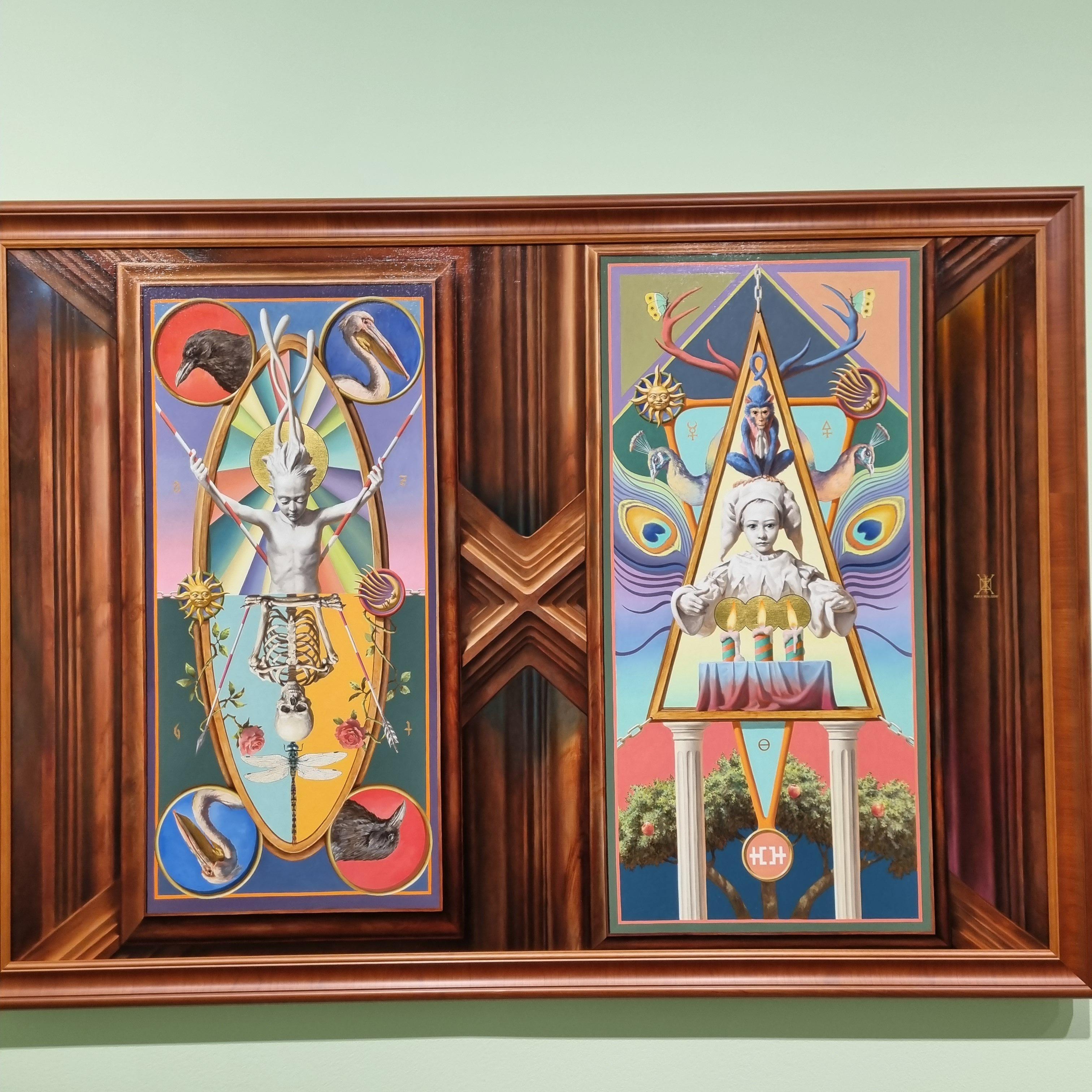 2층 전시장 한쪽에서 거대한 작품 두개를 만날 수 있는데, 2020년 출간된 그의 소설 <두 개의 깃발>에 등장하는 화가 사피에르가 죽기전 마지막으로 그린 작품을 표현했습니다.