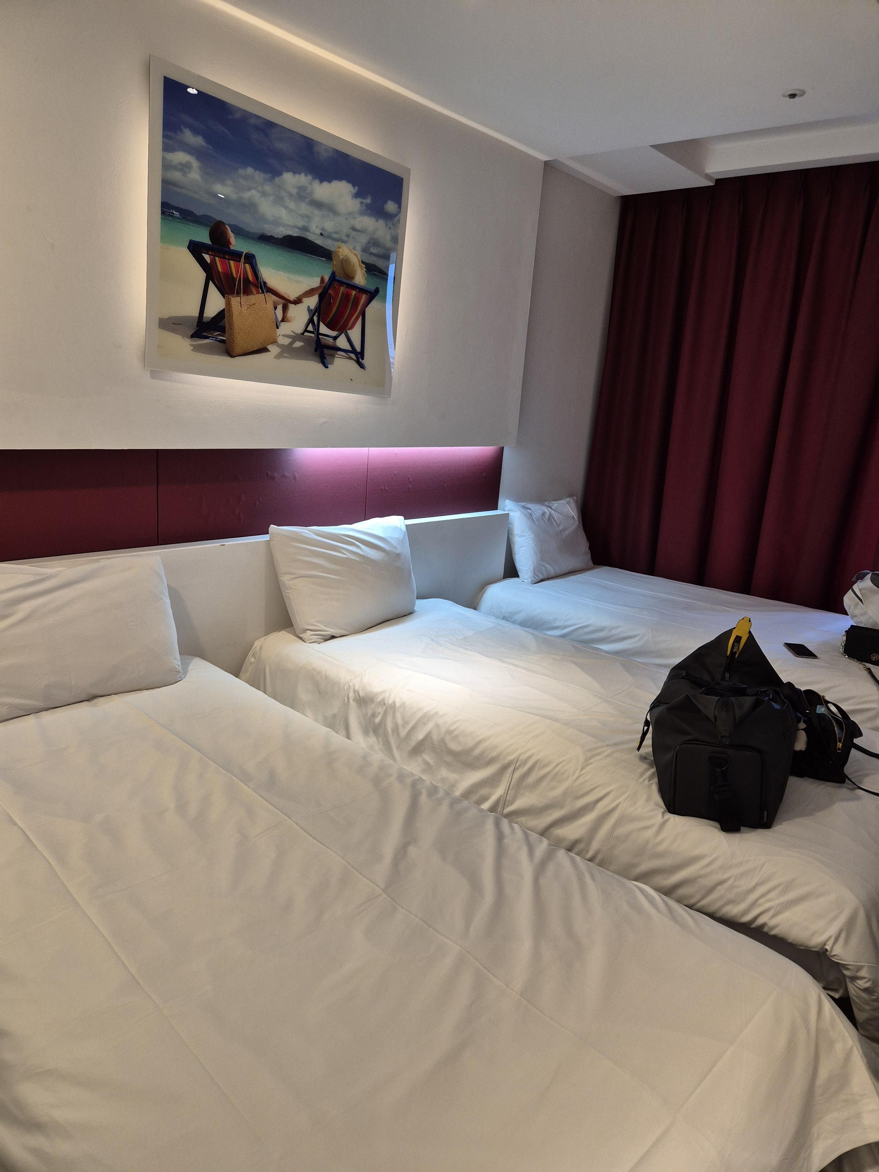더블침대에 둘이 자면 매트리스 삐걱거려서 잠을 잘 못잔다는 어느 분의 후기를 보고 저희는 싱글침대 3개가 있는 트리플룸으로 했습니다.