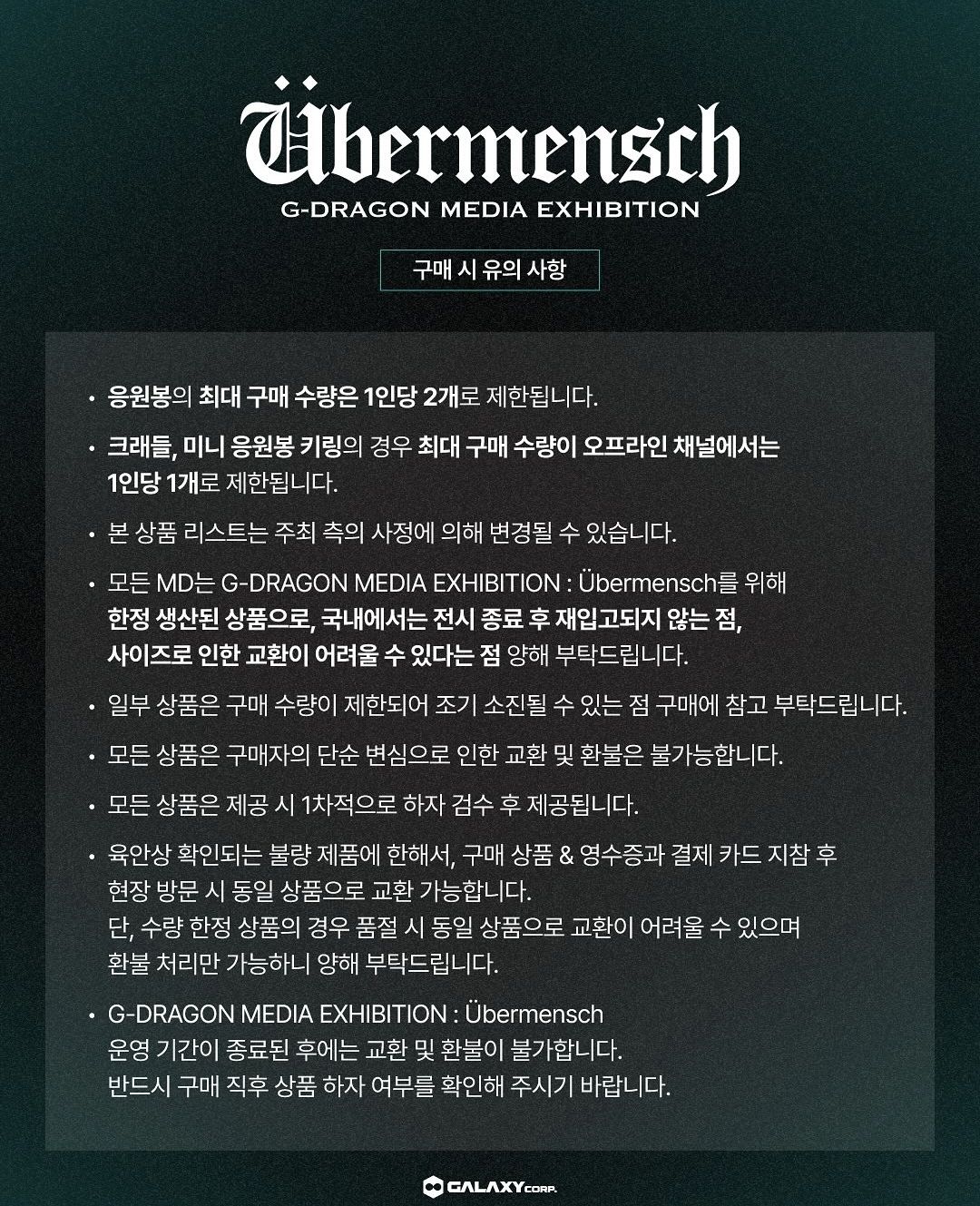 지드래곤 굿즈는 인당 구매수량이 한정되어 있고 이번 전시를 위해 한정 생산되었으며 전시 종료 후 재입고되지 않는다고 하니 참고하세요.