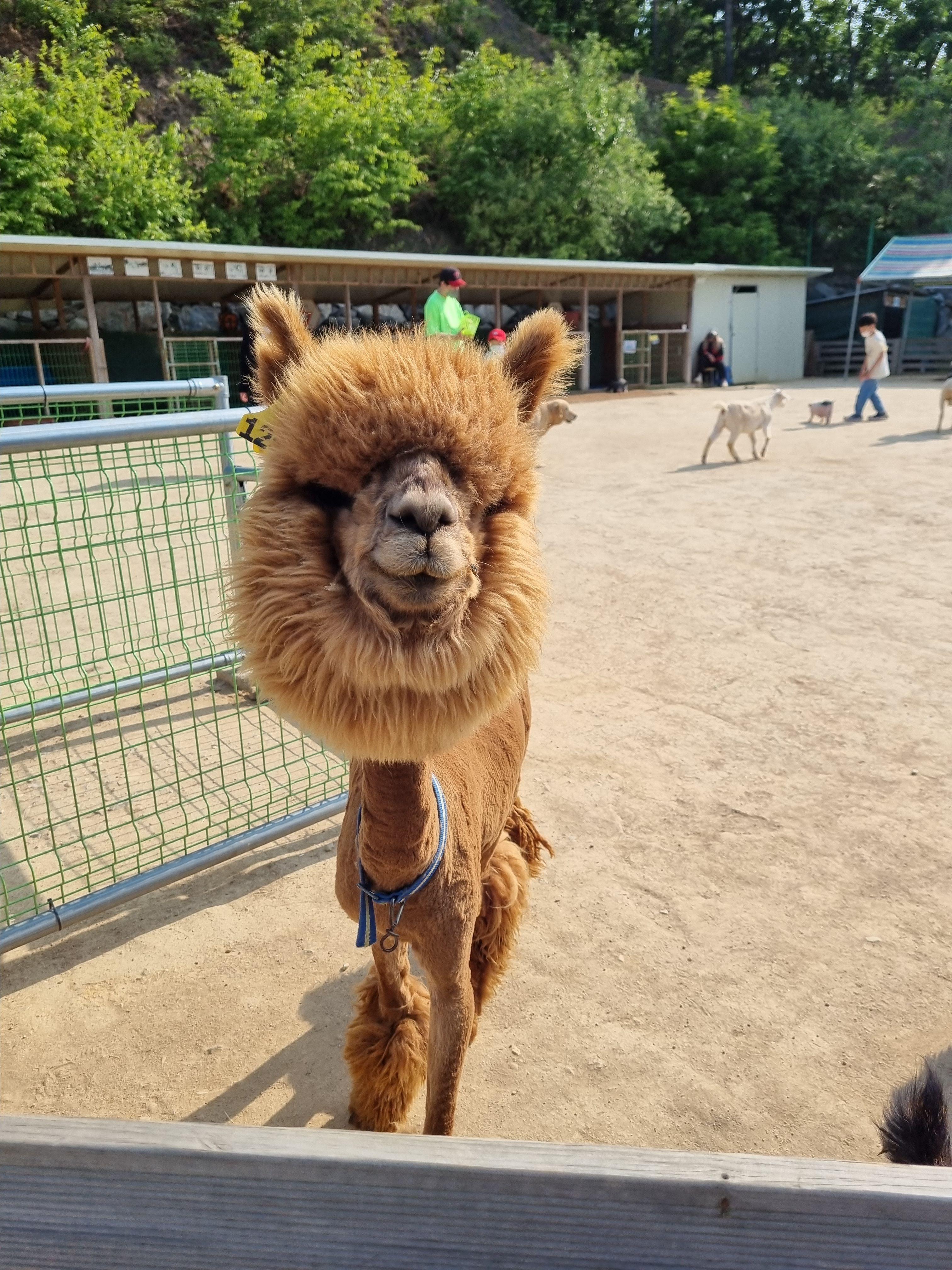 알파카가 생각보다 너무 커서 살짝 겁먹었어요.. 근데 푸들컷 너무 귀여운거 있죠~?