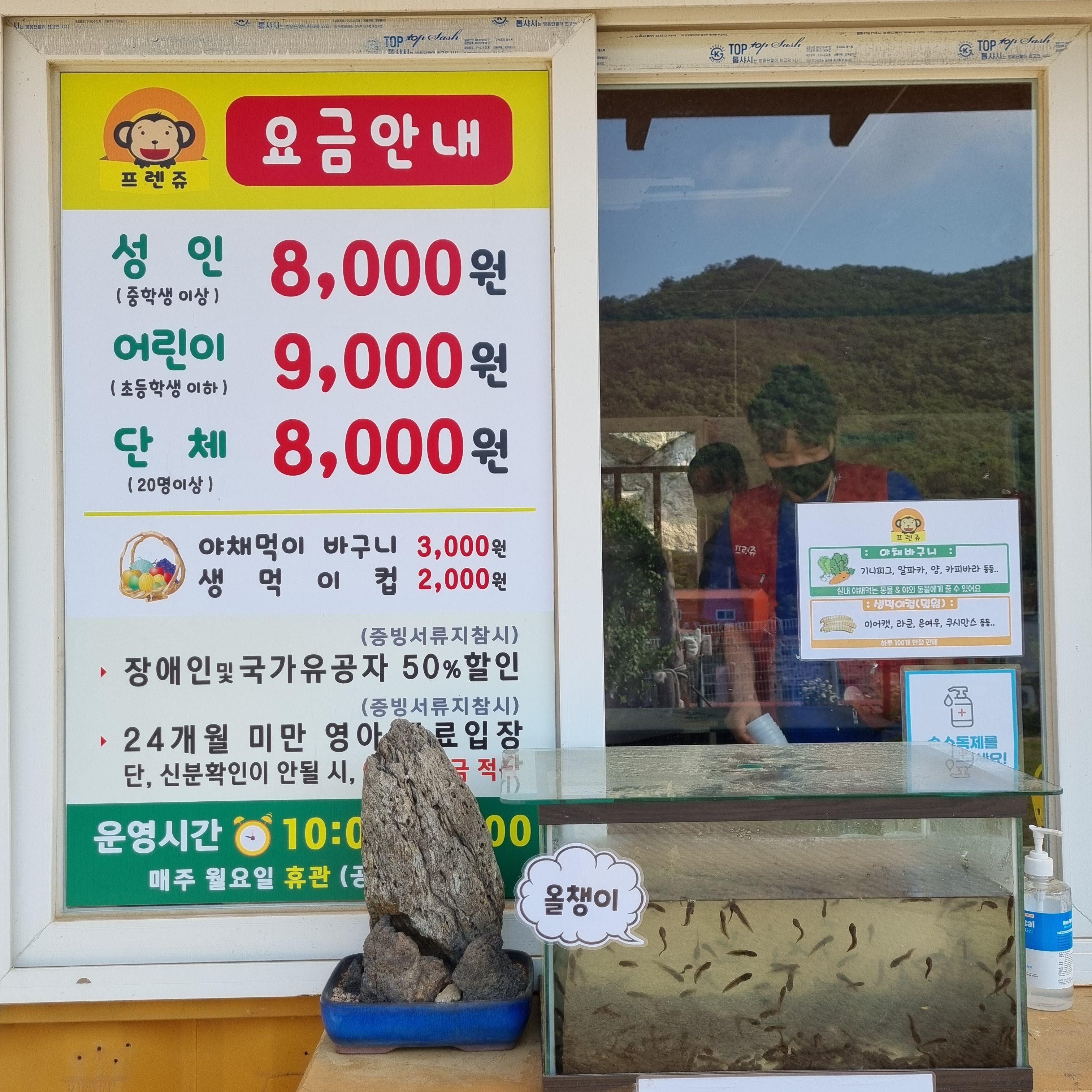 저희는 입장권과 야채먹이 바구니 하나와 생먹이컵을 구매했습니다.