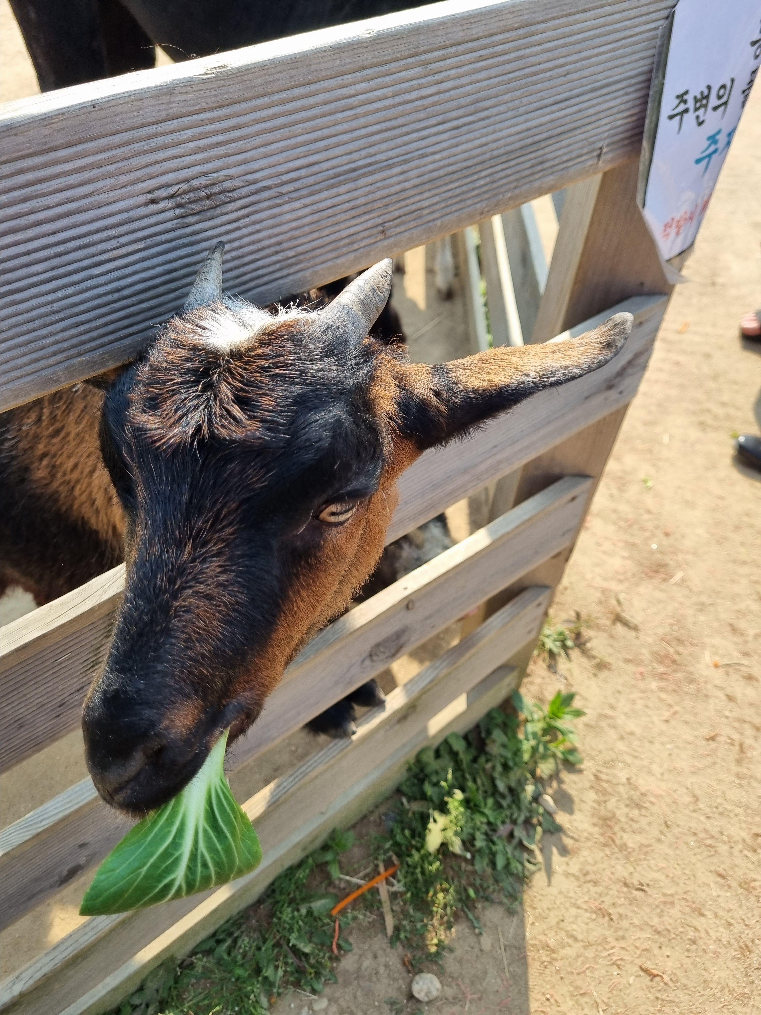 생먹이통은 실내동물원에서 다 주고 나오고 야채먹이는 조금 남겨서 밖으로 나왔습니다.
