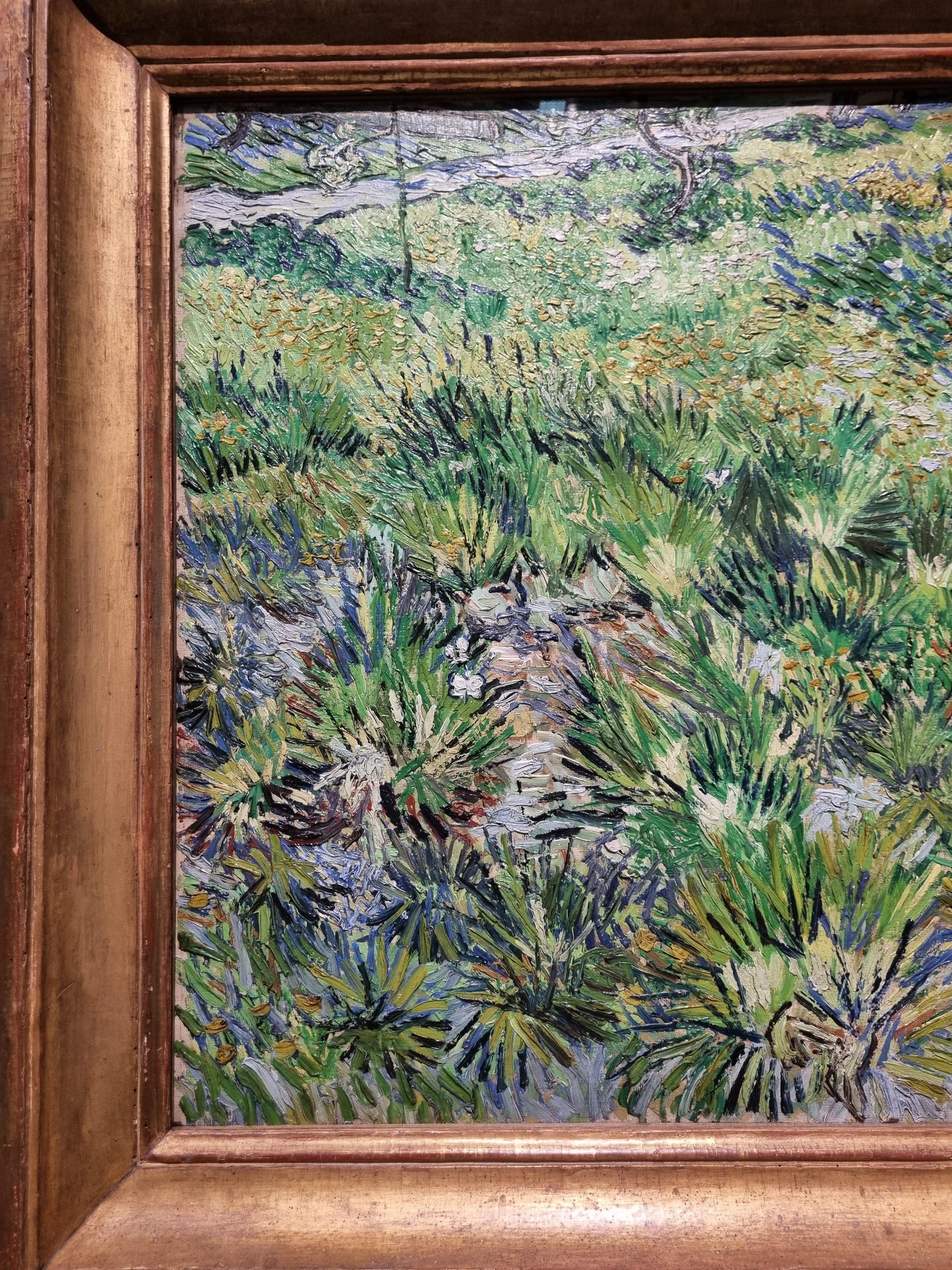 모네는 붓꽃을 좋아했는데 이 작품은 두껍고 대담한 붓으로 물감을 칠했고 캔버스의 흰 바탕이 드러난 채로 내버려두기도 했습니다.