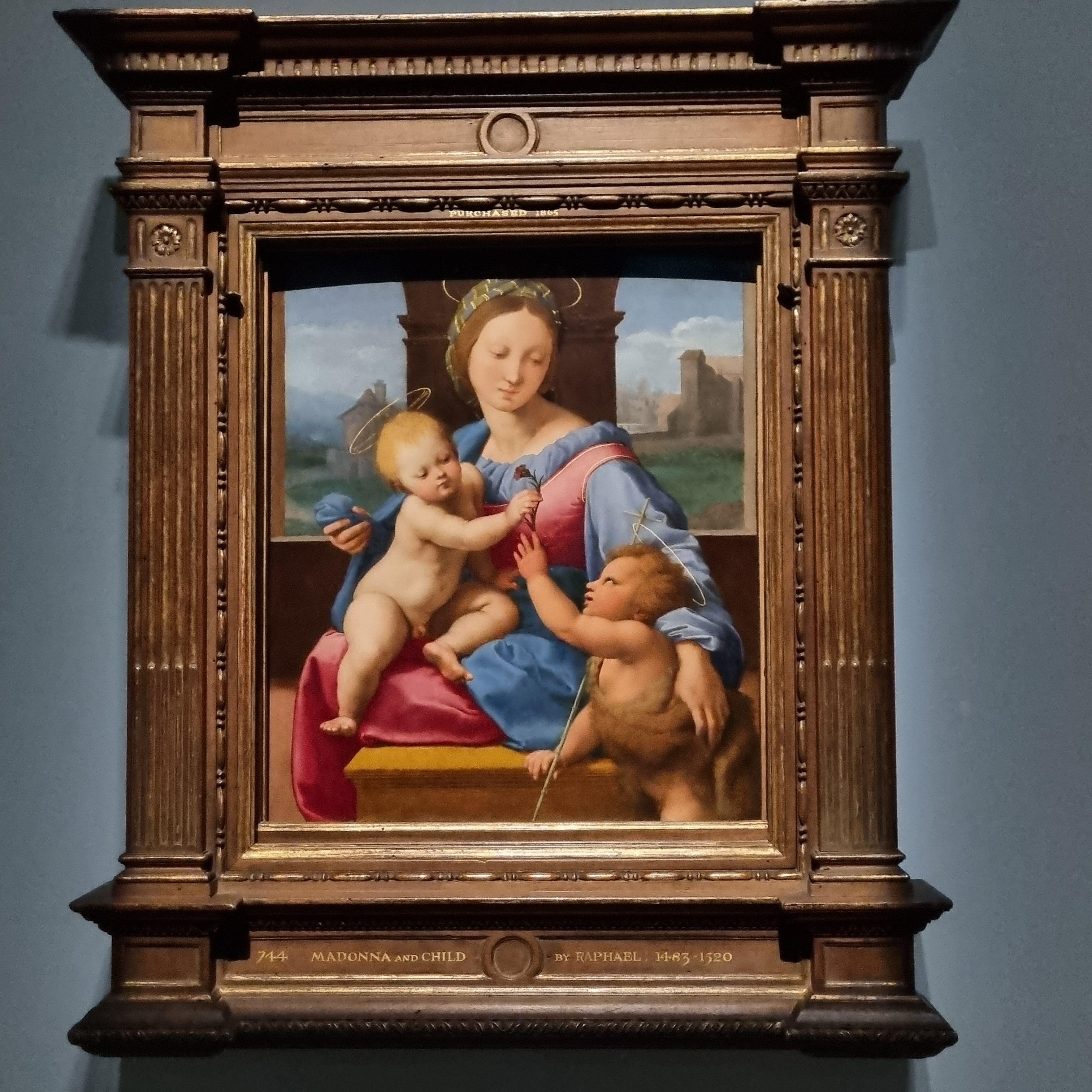 예수와 성모의 모습에 모성애 같은 인간의 감정이 담기고, 배경에는 영원한 진리를 상징하는 중세의 황금빛 대신 자연과 건물을 그려 신성한 존재들이 현실세계로 내려오도록 했어요.