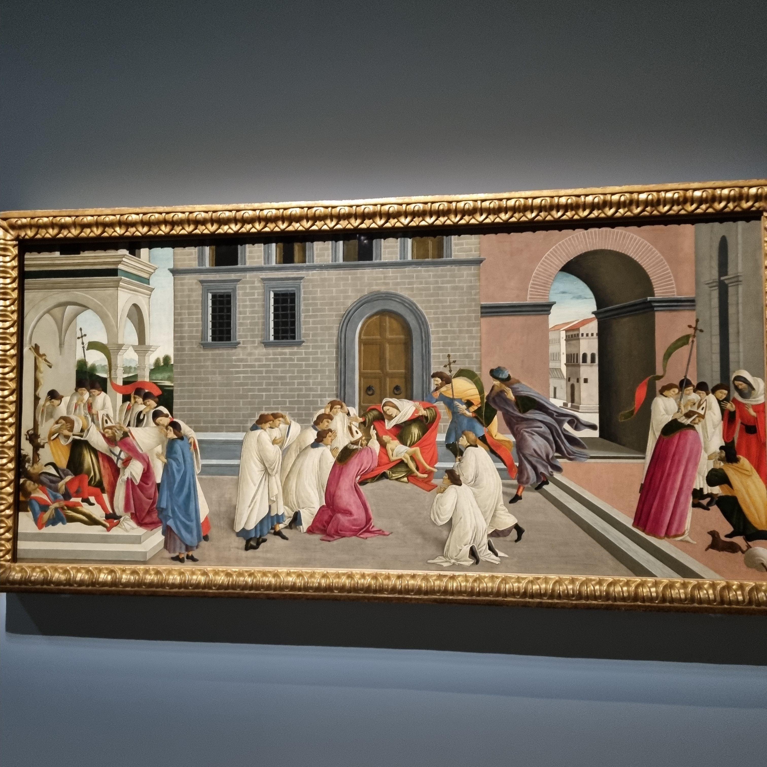 이 작품에서는 성 제노비오가 일으킨 세 가지 기적을 그린 장면이 담겨있는데,