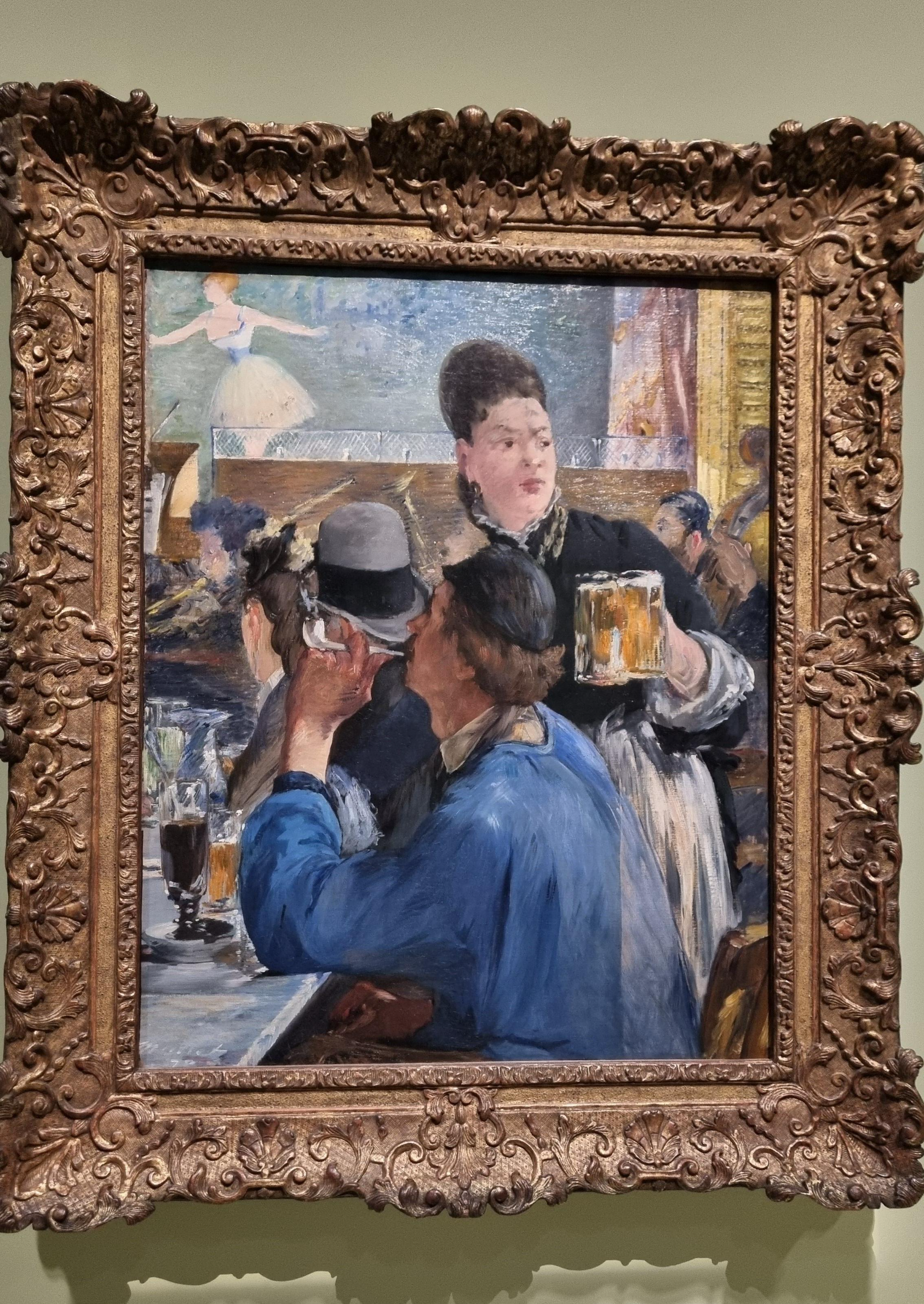 이 그림은 마네가 잔을 여러 개 들고도 한 방울도 흘리지 않고 서빙하는 종업원의 솜씨에 감탄해 작업실에 와서 모델이 되어달라고 제안했다고 합니다.