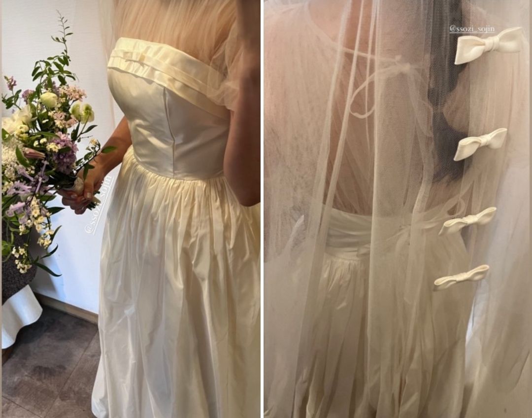 소진은 서울 성북동에 있는 장소에서 야외 결혼식을 올렸는데 그녀가 선택한 본식드레스 브랜드는 포마이시스 입니다.