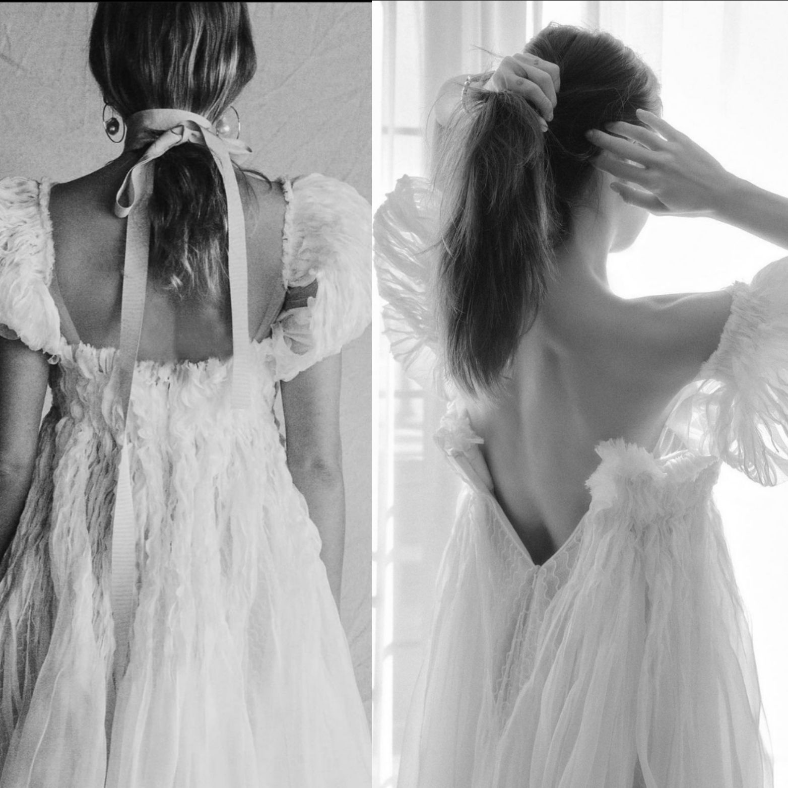 하얀 드레스를 피팅하는 순간을 포착한 듯한 느낌의 사진에서 너무도 그녀다운 분위기를 느낄 수 있었어요.