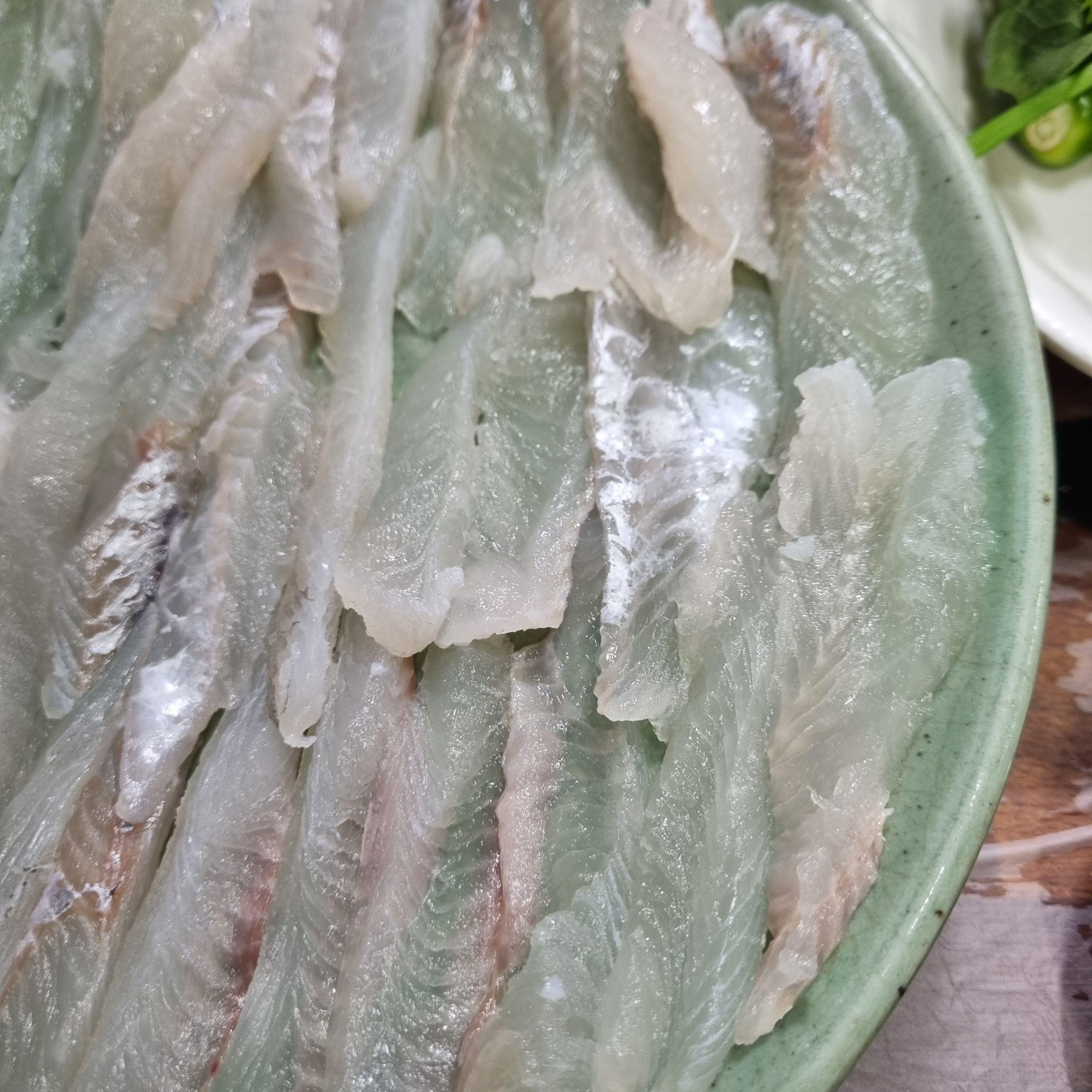 밖에서 멸치를 손질하시는 분께 오늘 어떤 회가 좋냐 여쭤보니 자연산 광어가 좋대서(지금 생각해보면 당연한 얘기) 맛보기 회를 시키려다 자연산 회를 작은 걸로(60,000) 주문했습니다.