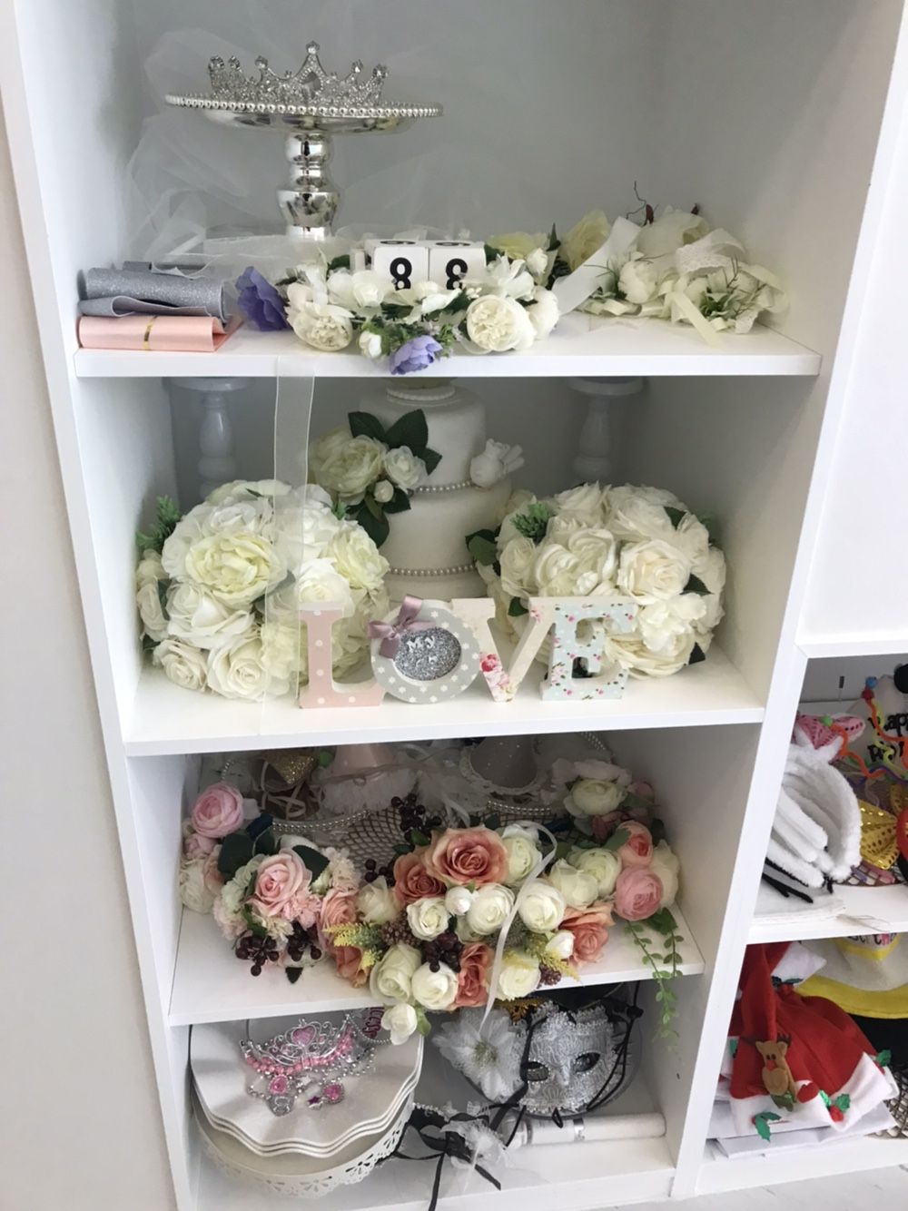 브라이덜 샤워 파티룸으로 이용하시는 분들을 위해 부케, 화관, 티아라, 귀여운 머리띠 등의 소품들도 많이 구비되어 있었어요.