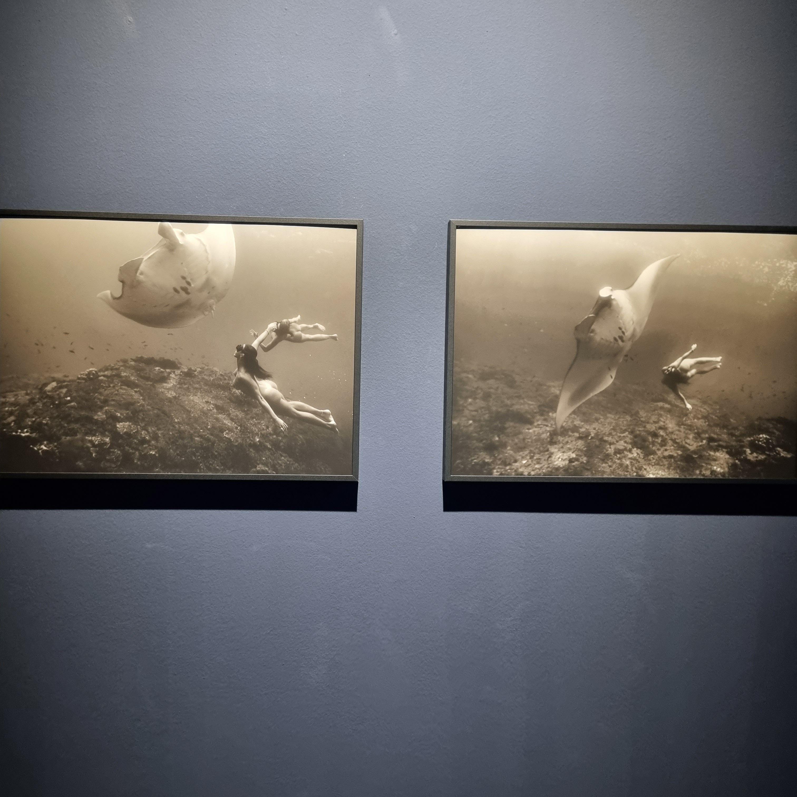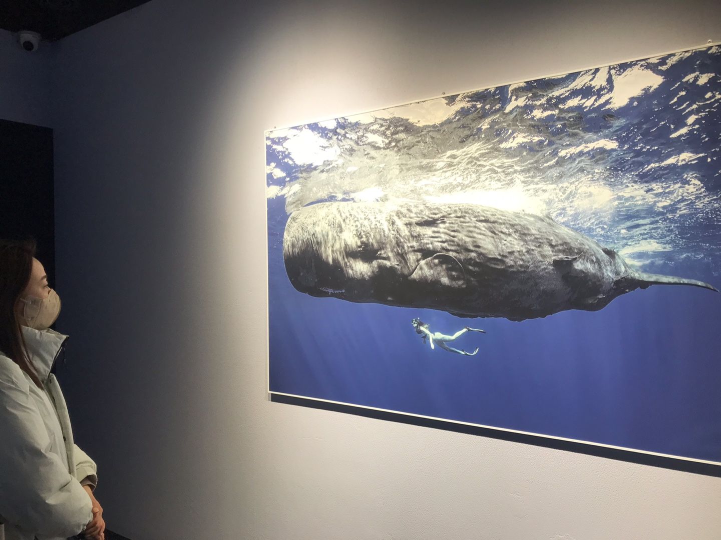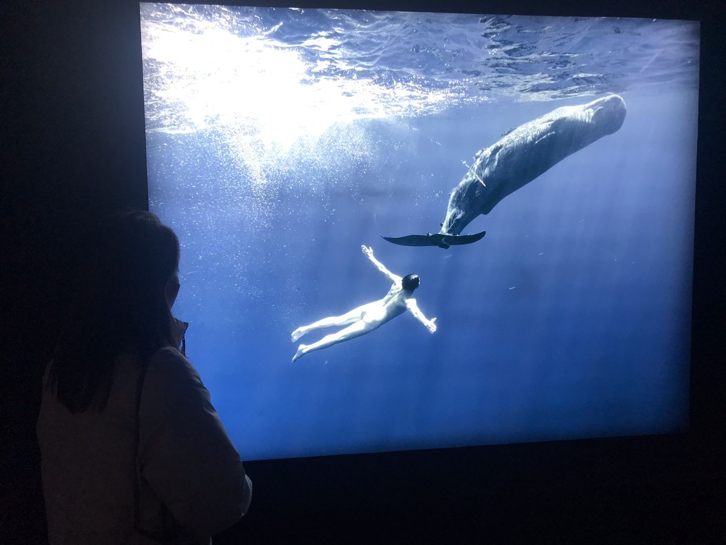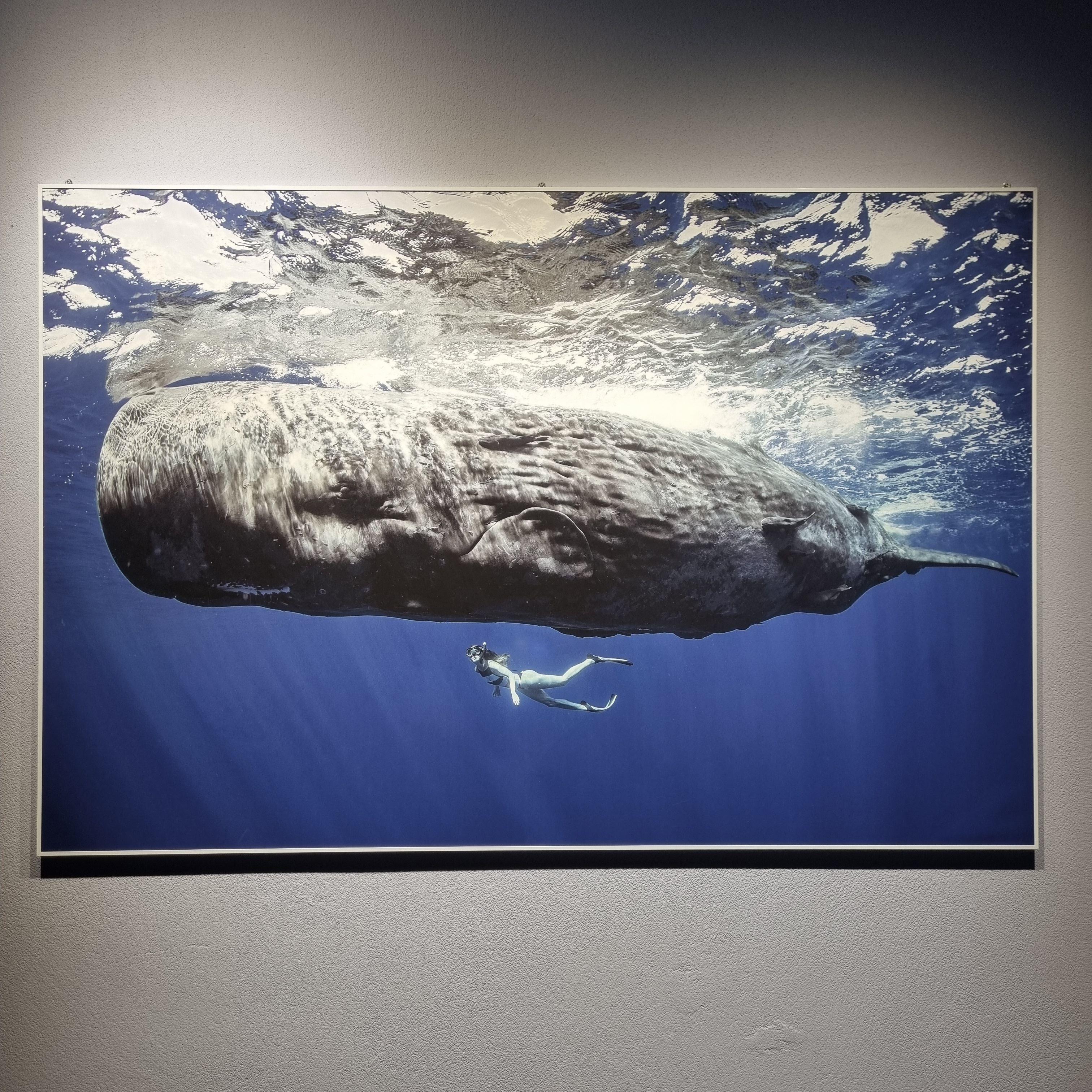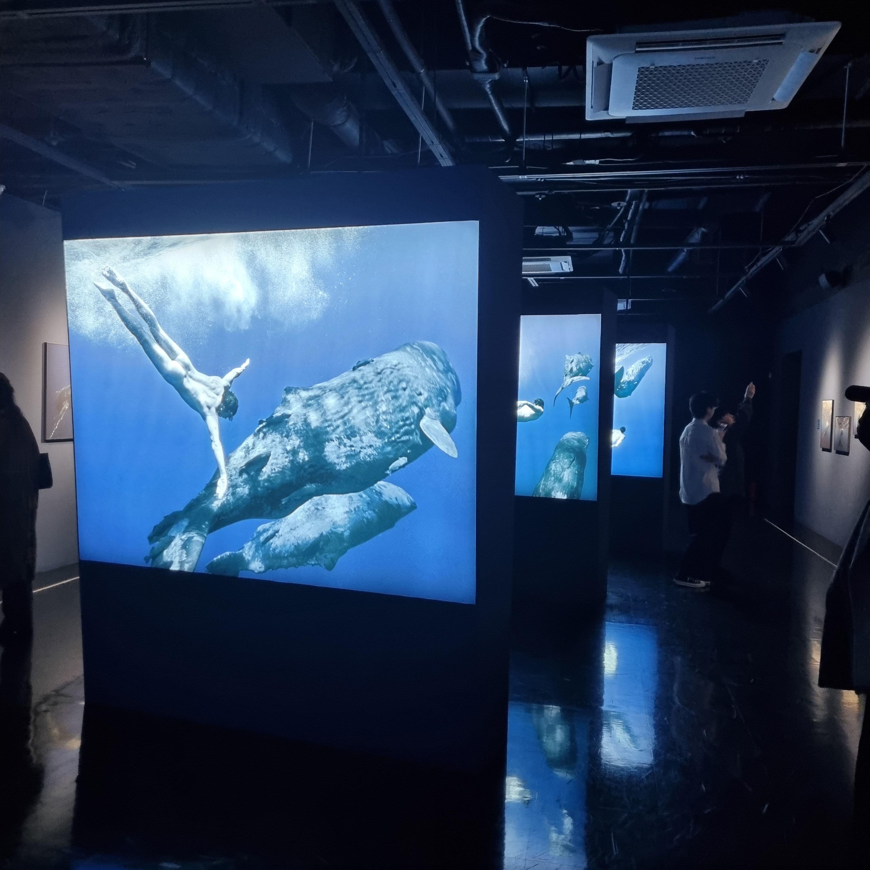 그라운드 시소 나탈리 사진전의 시그니처 컷인 향유고래와 같이 수영하는 사진.