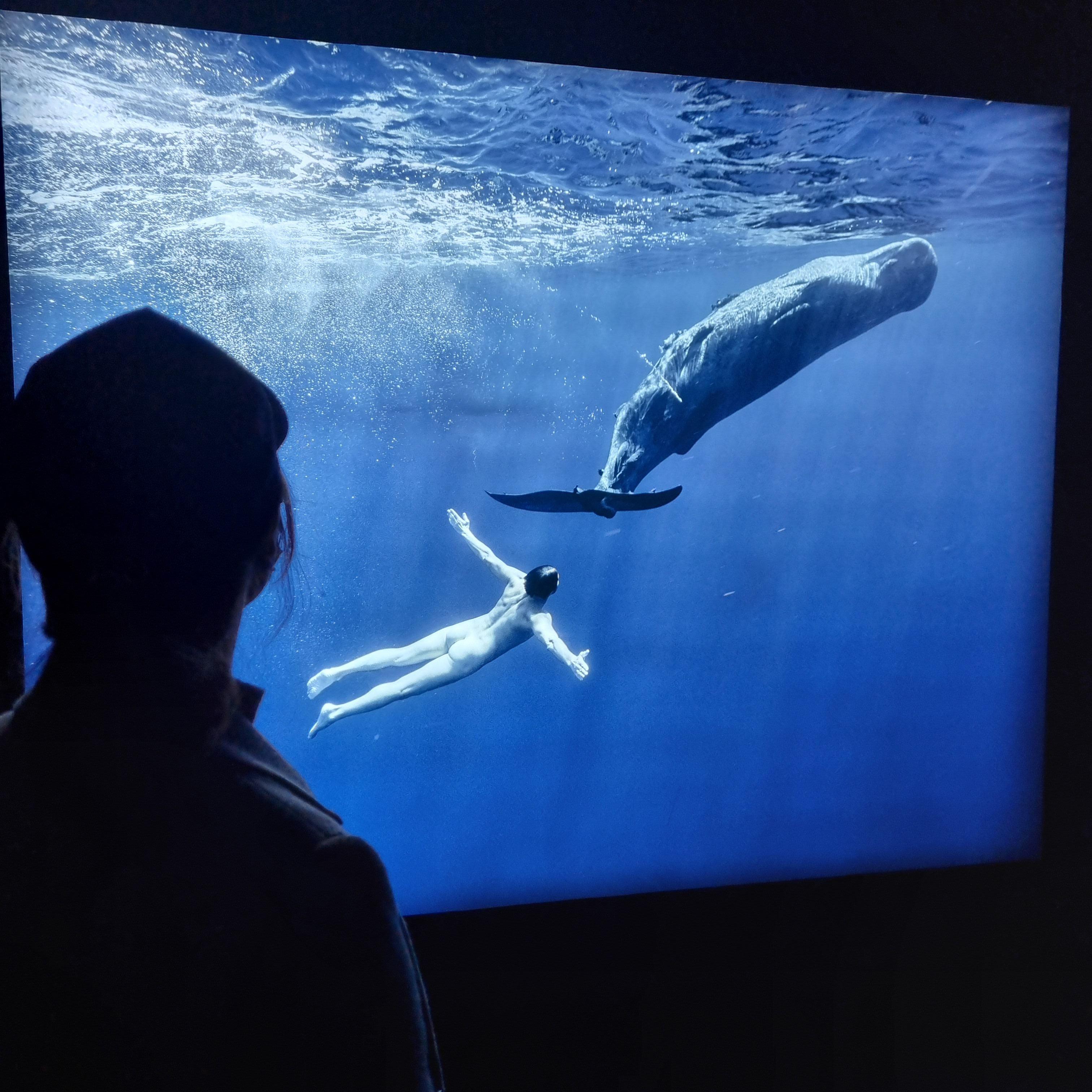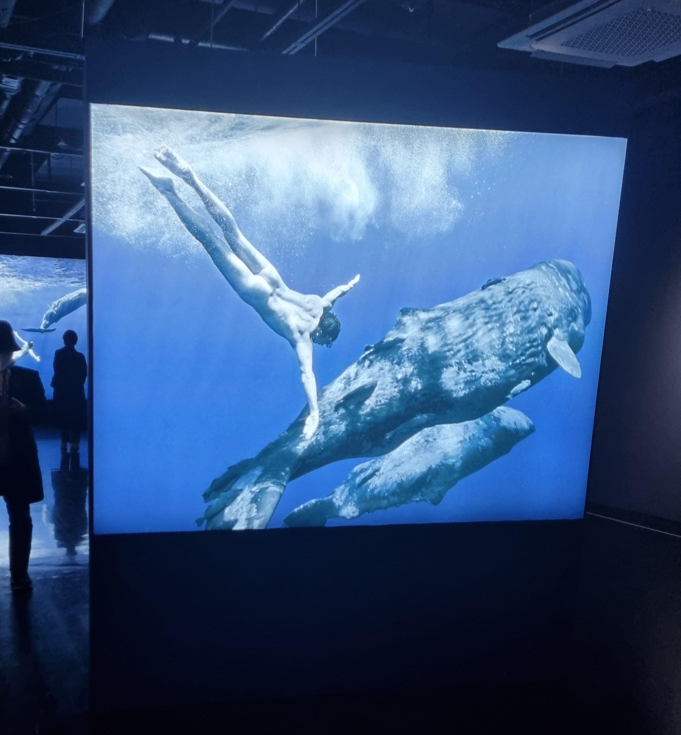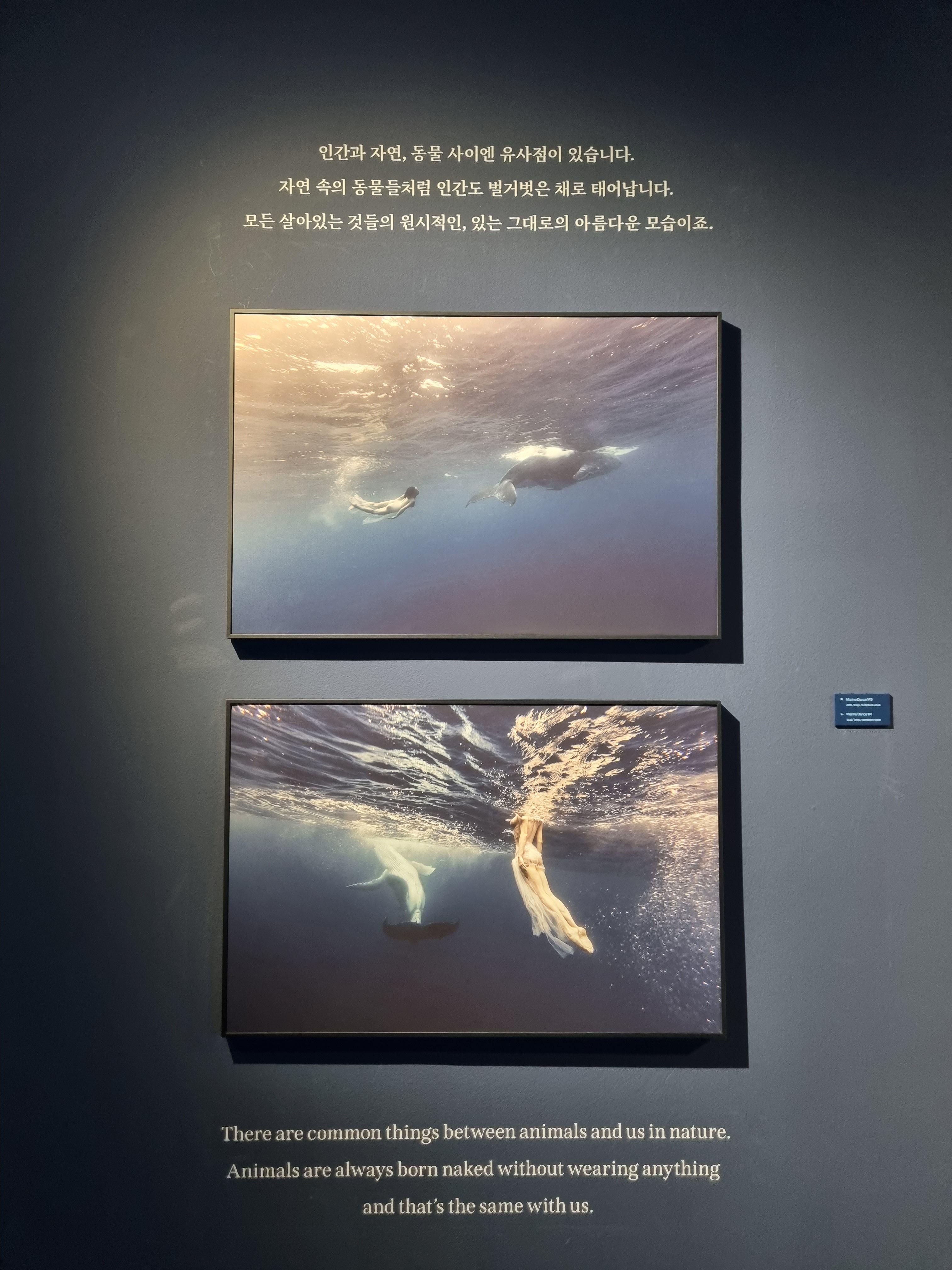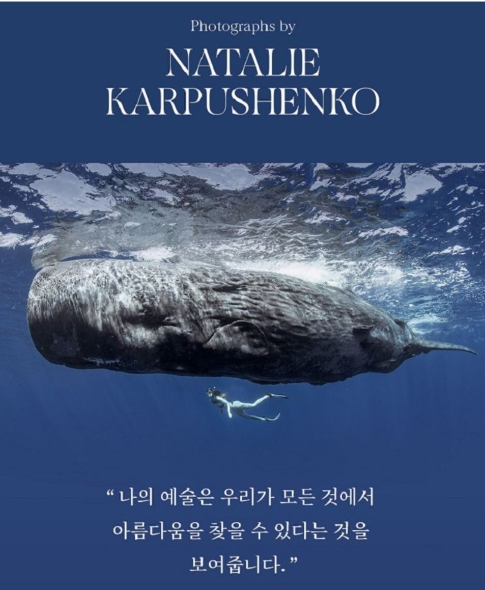 그라운드 시소 나탈리 사진전의 시그니처 컷인 향유고래와 같이 수영하는 사진.