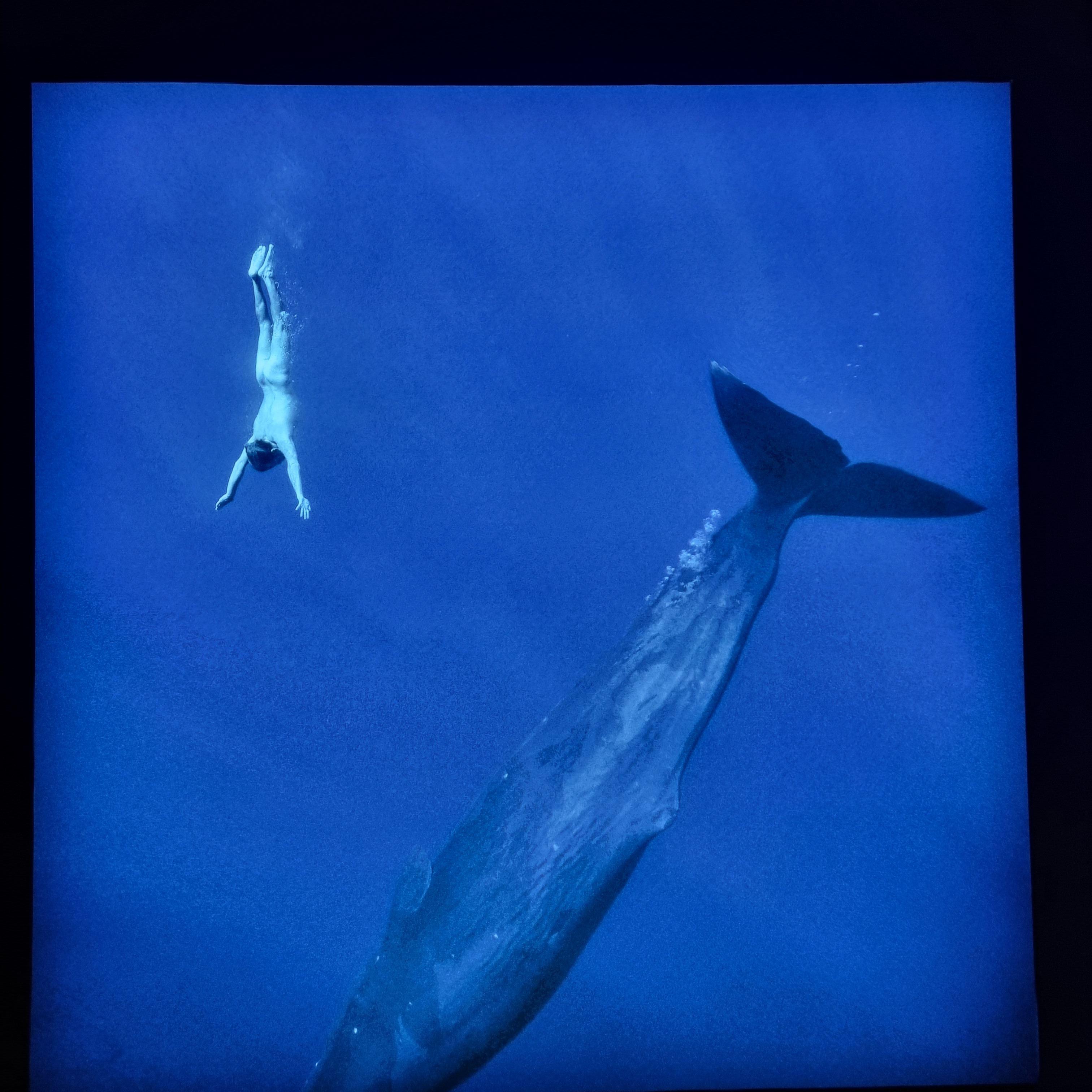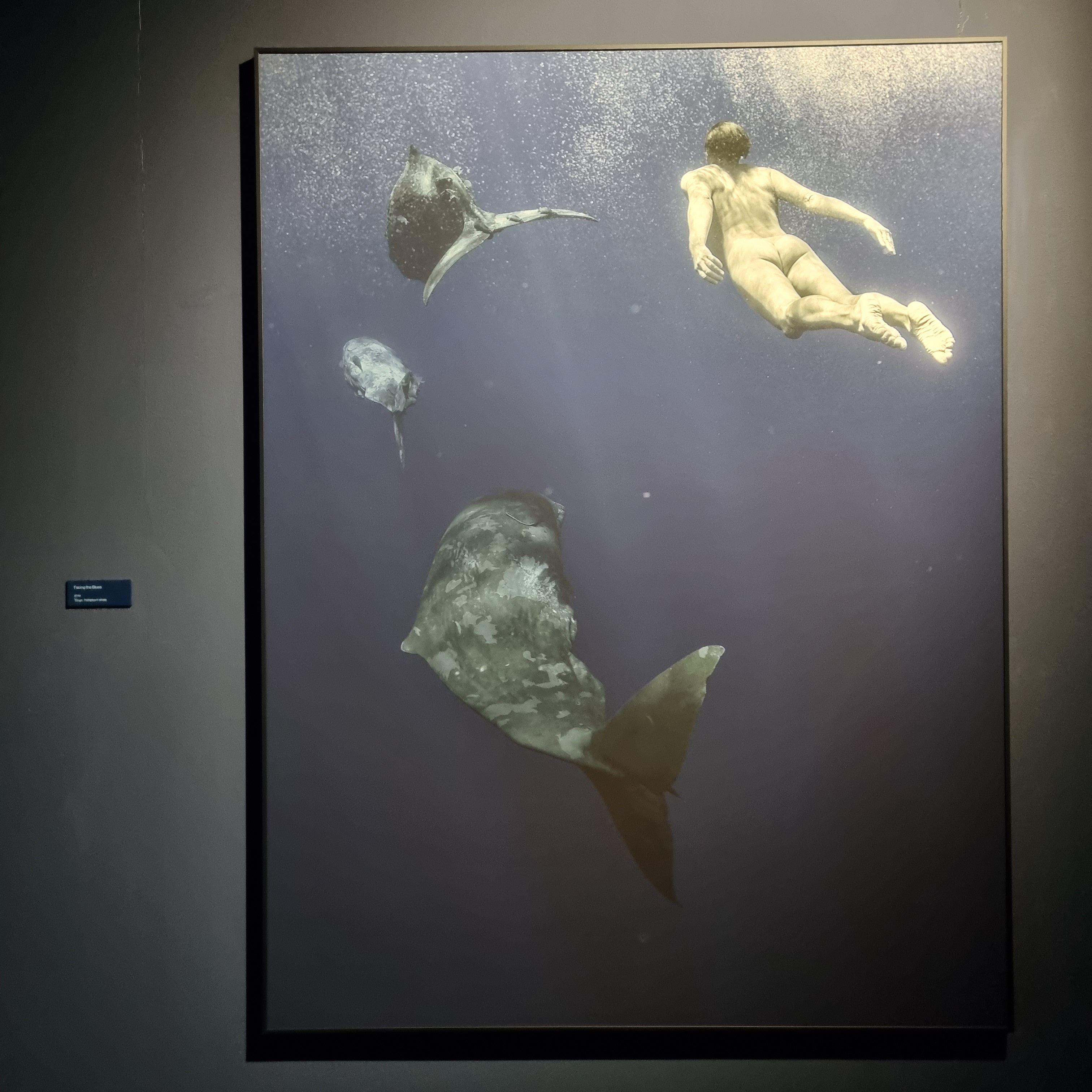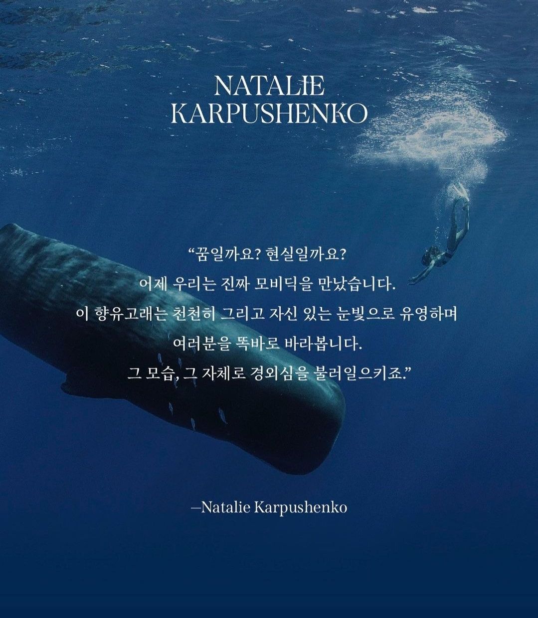 그라운드 시소 나탈리 사진전의 시그니처 컷인 향유고래와 같이 수영하는 사진.