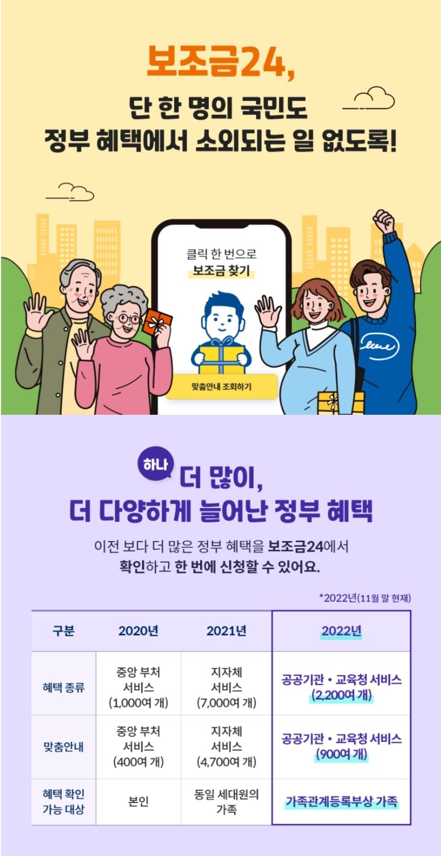 이전보다 더 많은 혜택이 늘어났고, 보조금24에서 확인하고 한번에 신청할 수 있습니다.