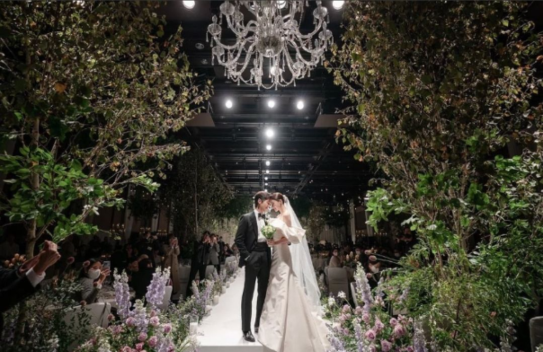 남궁민과 진아름이 선택한 예식장은 많은 연예인들이 웨딩마치를 올리는 신라호텔이었고, 화려한 꽃장식과 거대한 샹들리에홀을 빼곡히 채운 알전구 장식들이 눈에 띄었습니다.