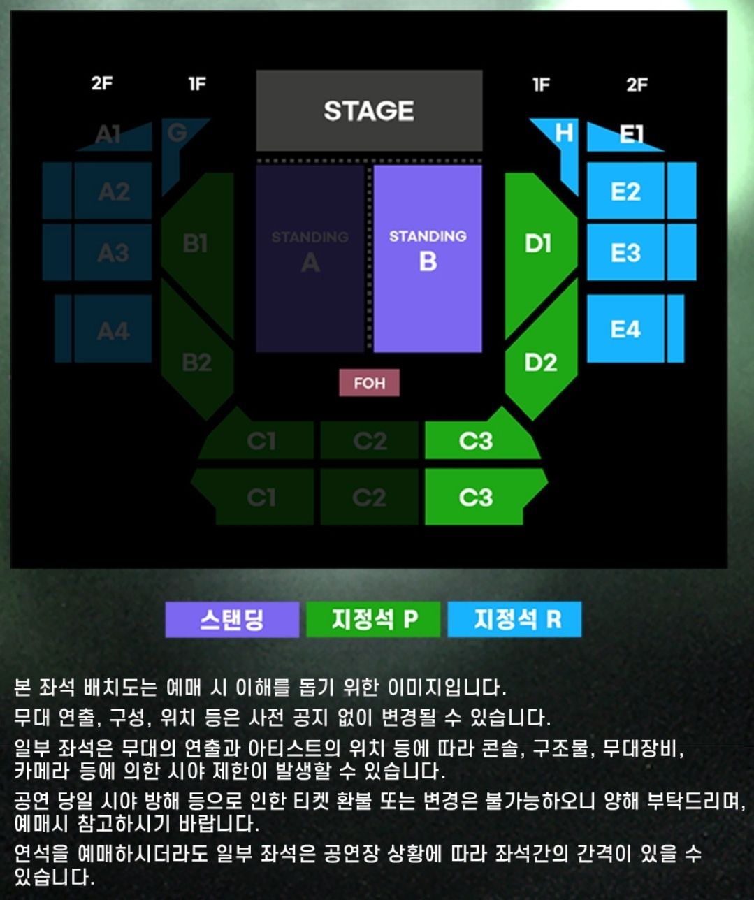 다니엘 시저 콘서트는 스탠딩석과 지정좌석으로 구분되어 있고, 좌석 배치도를 참고하시면 되겠습니다.