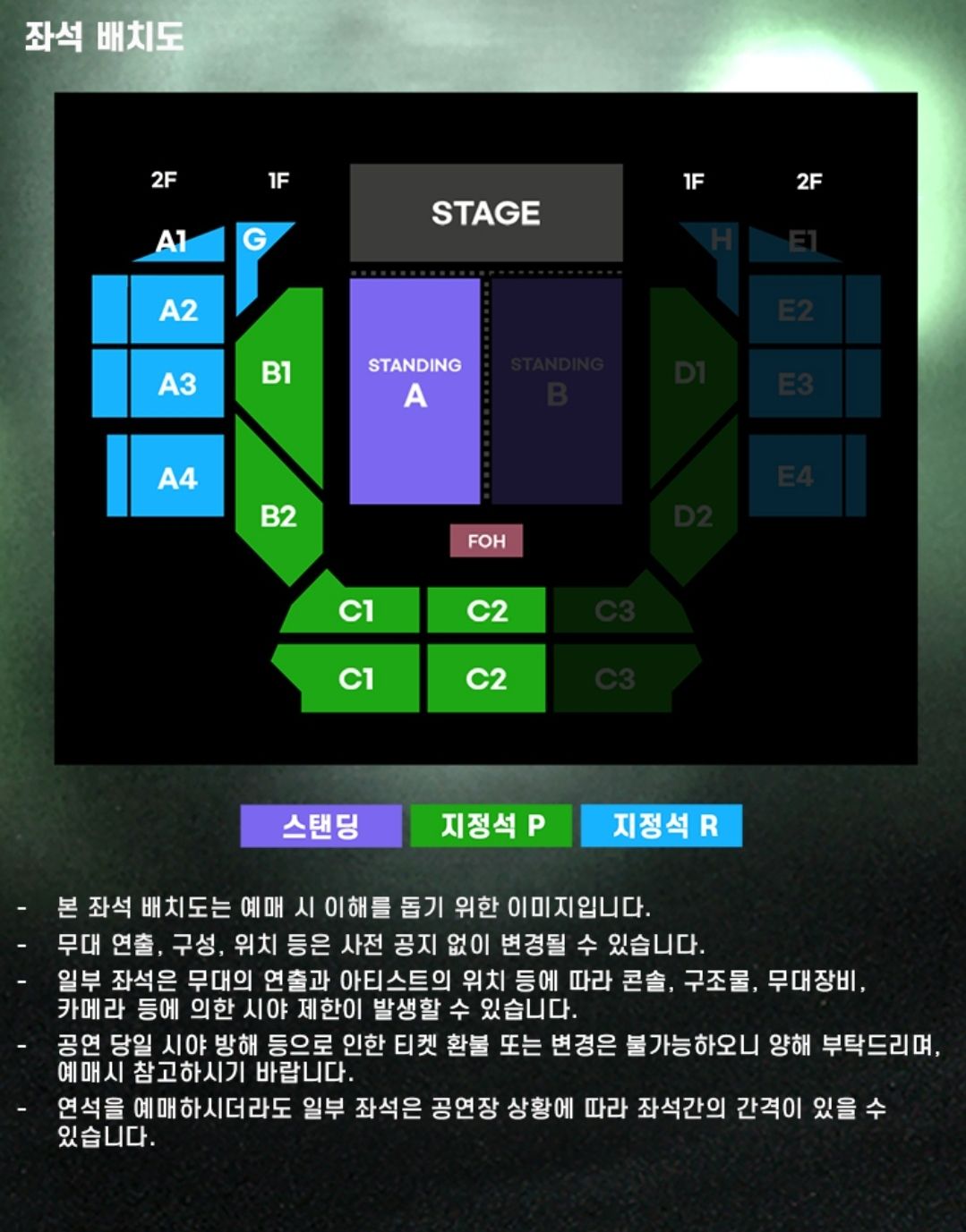 티켓 스탠딩 121,000원/ 지정석 P 121,000원/ 지정석 R 110,000원
