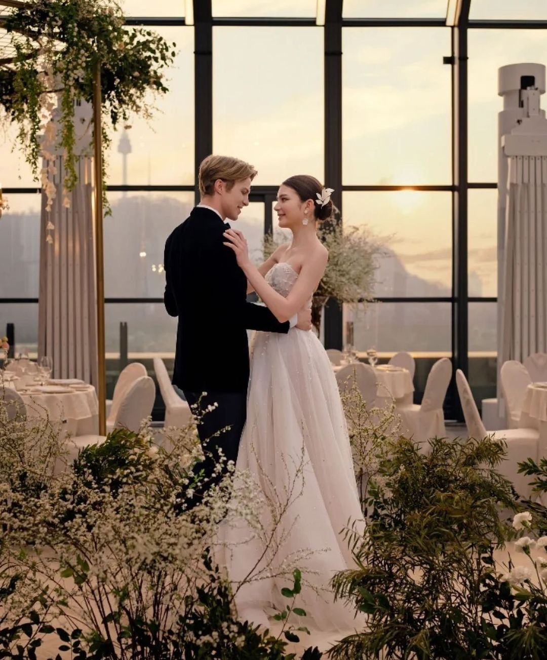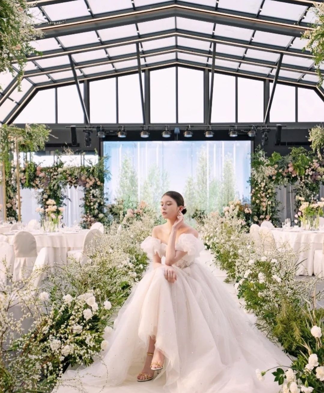 요즘 웨딩스타일 트렌드가 그리너리한(초록초록) 웨딩이 많은데,앰버서더서울풀만의 루프탑에서 로맨틱한 플라워장식과 채광이 쏟아지는 화사한 웨딩은 이해리씨와도 너무 잘 어울렸어요.