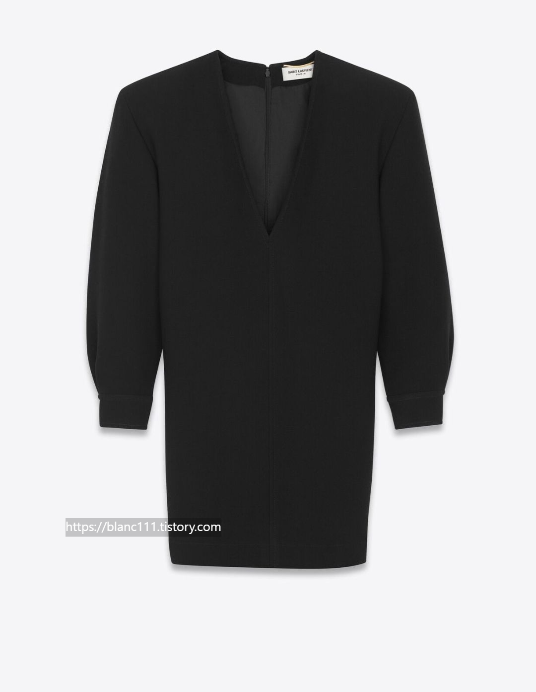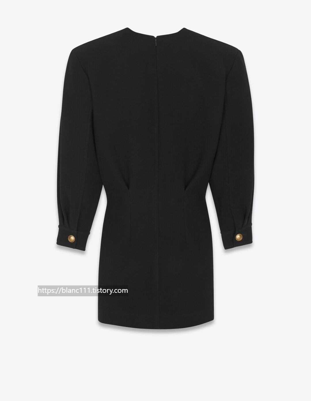이해리가 결혼식 2부에 착용한 2부드레스는 생로랑으로 블랙컬러의 미니원피스, 깊은 V넥라인에 파워숄더디자인으로 소매끝 골드버튼으로 포인트를 주었네요.