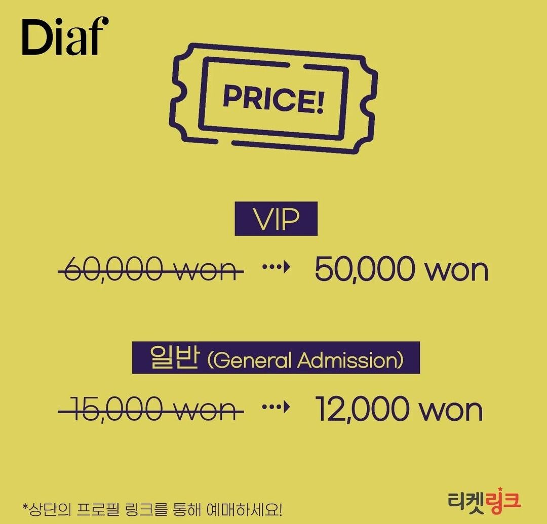 VIP 티켓은 현장에선 60,000원이지만 사전예매하면 50,000원으로 할인되고