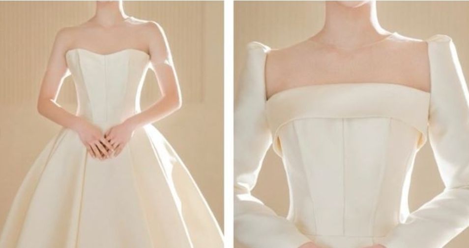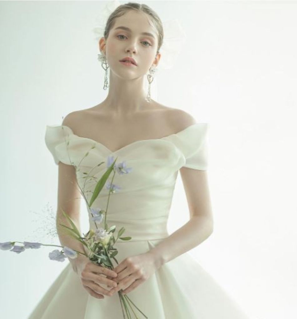 A라인스커트에 오프숄더 네크라인은 예비신부들이 가장 사랑하는 조합 중 하나인데요,