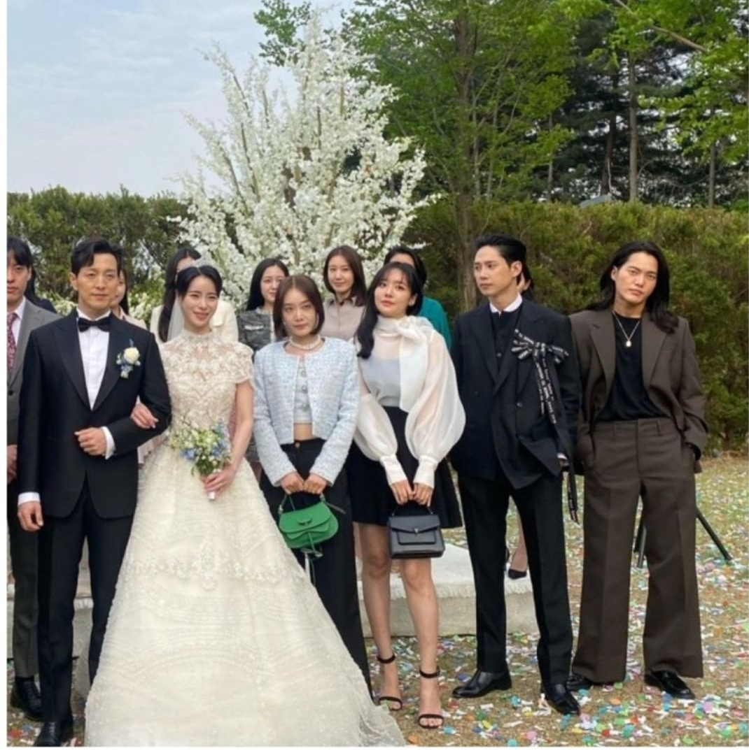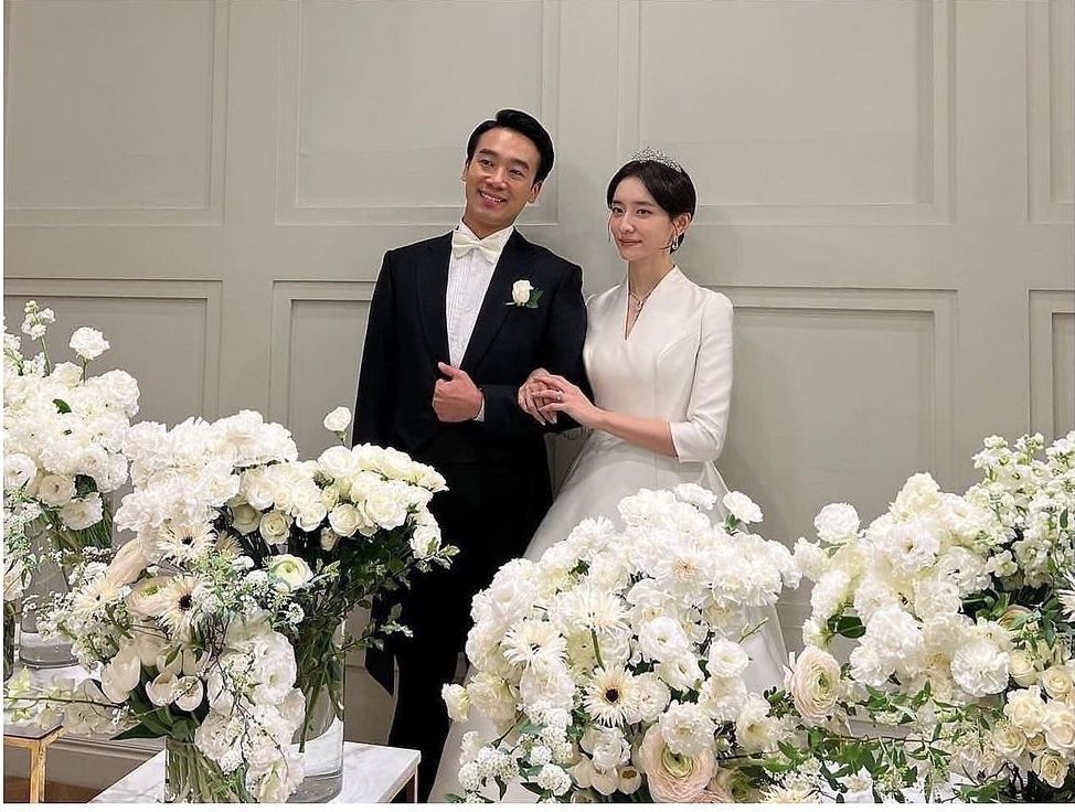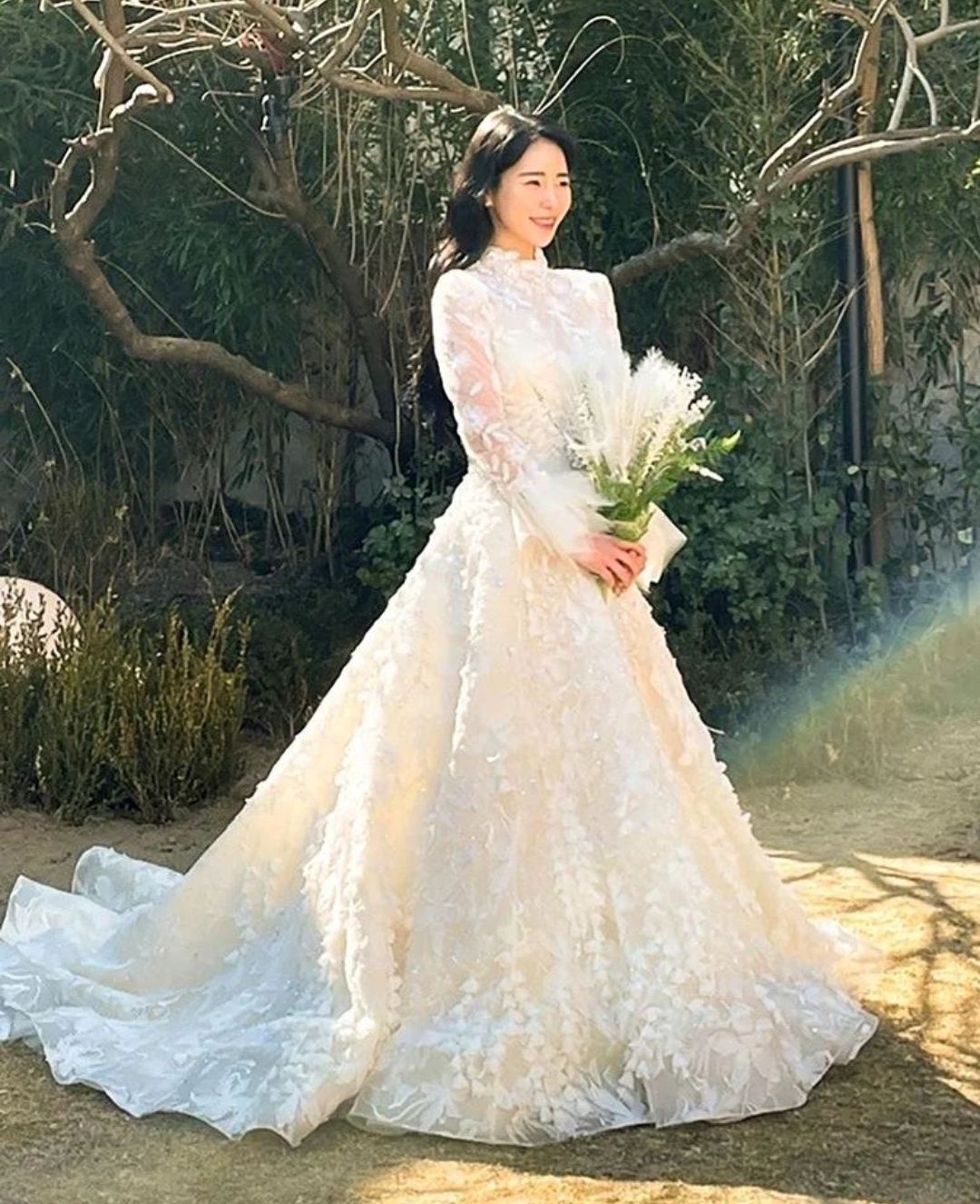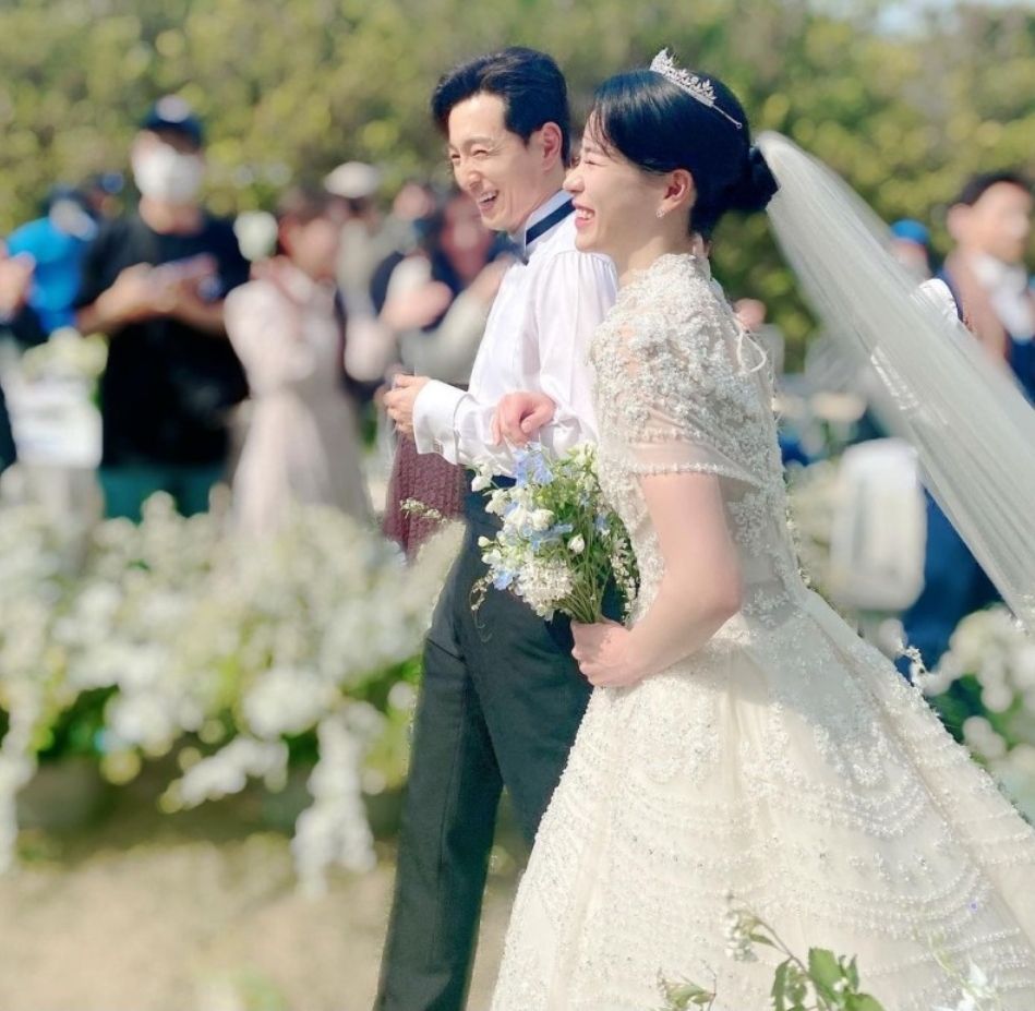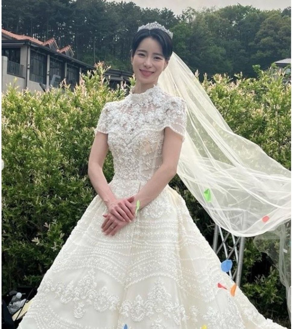 가든파티처럼 진행된 두 사람의 결혼식에서 박연진은 화려한 레이스에 비즈장식까지 가득히 올라간 화려한 디자인을 입었습니다.