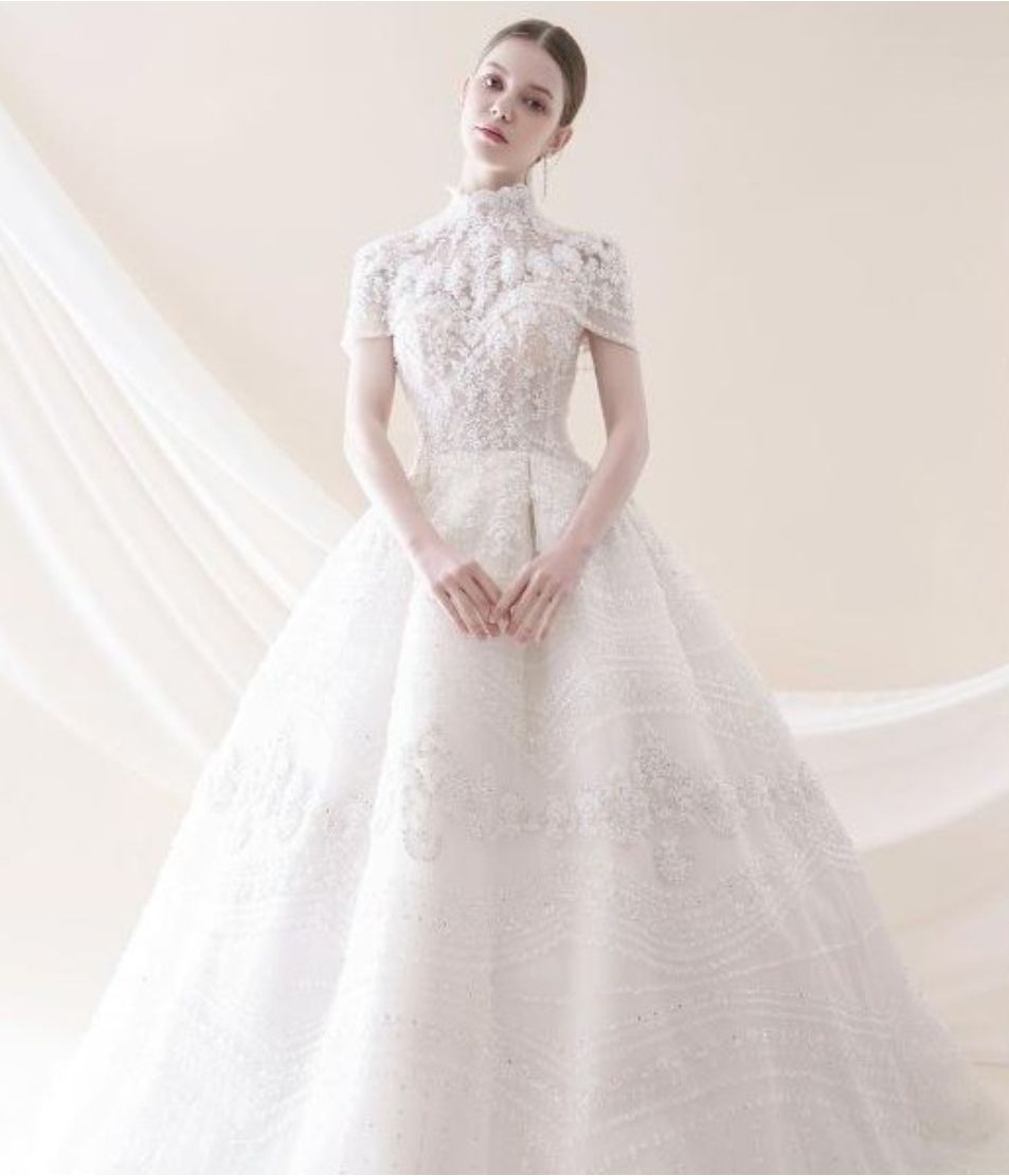 우아한 럭셔리 스타일의 웨딩드레스를 선호하시는 신부라면 드라마 속 모현민의 하이넥, 긴소매드레스를 저장해 두세요.