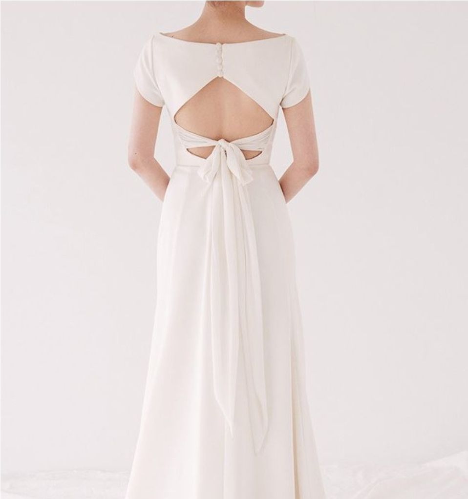 앞모습은 심플 그자체이지만 뒷모습은 베어백스타일에 쉬폰 소재의 리본이 포인트로 묶이게끔 디자인되어 있습니다.