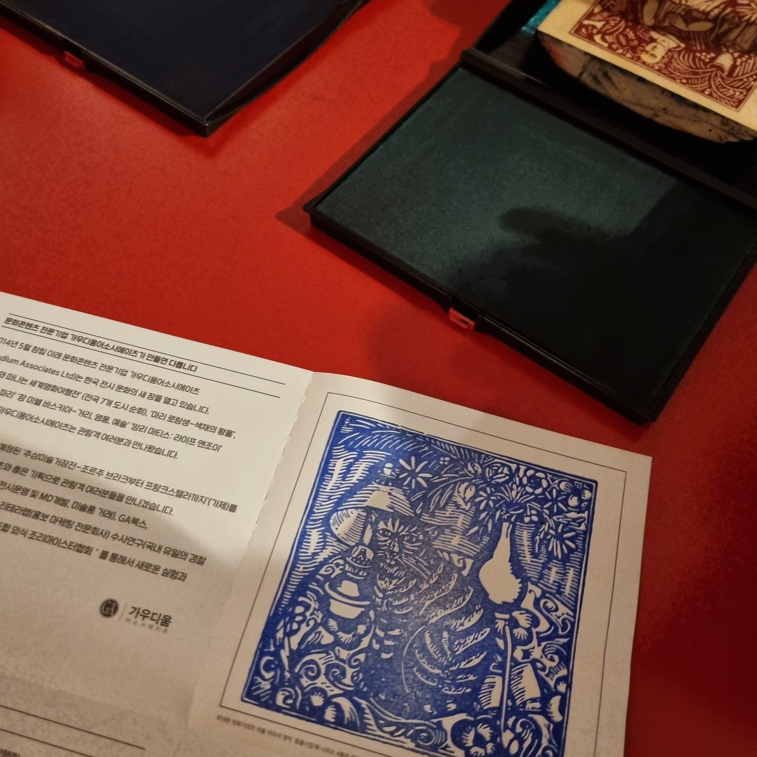뒤피의 <동물시집>에 나오는 4종의 목판화를 직접 찍어보는 체험공간도 있어서 재미있었어요.