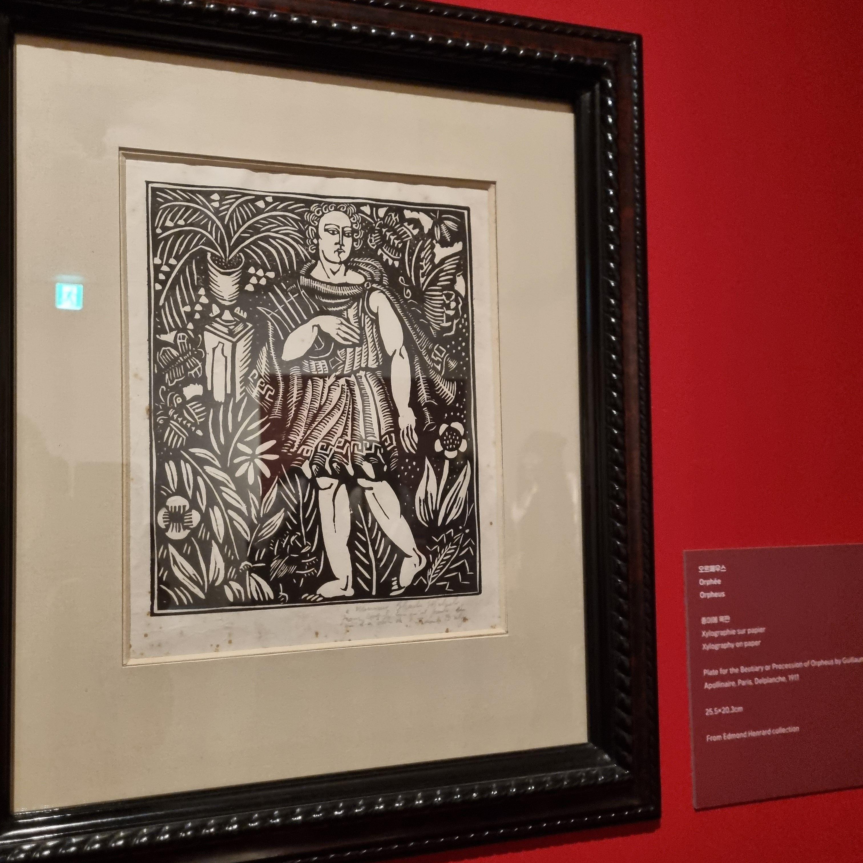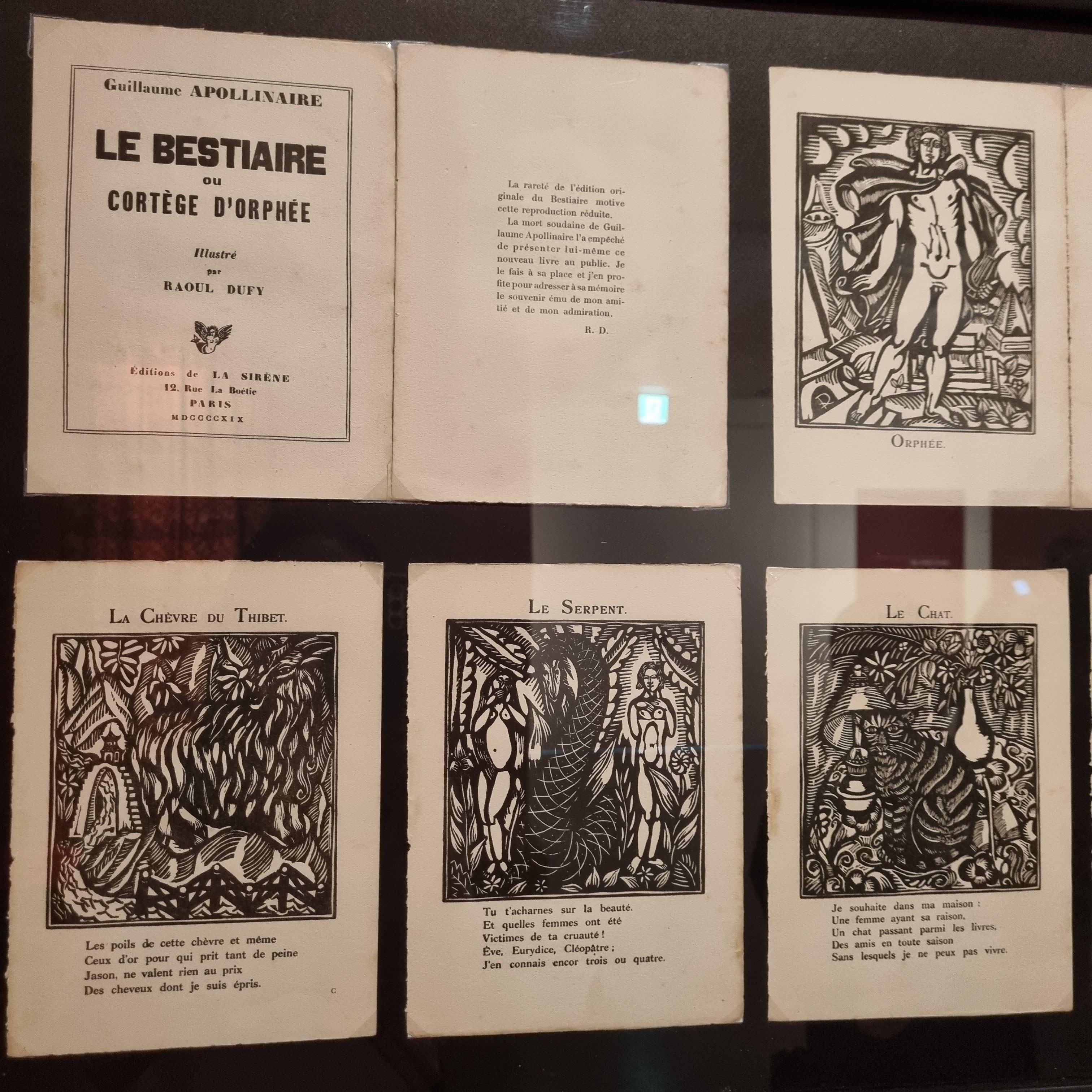 뒤피는 1920년 천재 시인 기욤 아폴리네르의 <동물시집>의 작업을 시작하게 되는데, 사실 아폴리네르는 자신의 시의 삽화 작업을 파블로 피카소에게 의뢰했었지만 입체파 작업에 몰두해있던 피카소는 제안을 거절했고 기회는 목판화로 명성을 쌓기 시작한 뒤피에게 돌아갔다고 합니다.