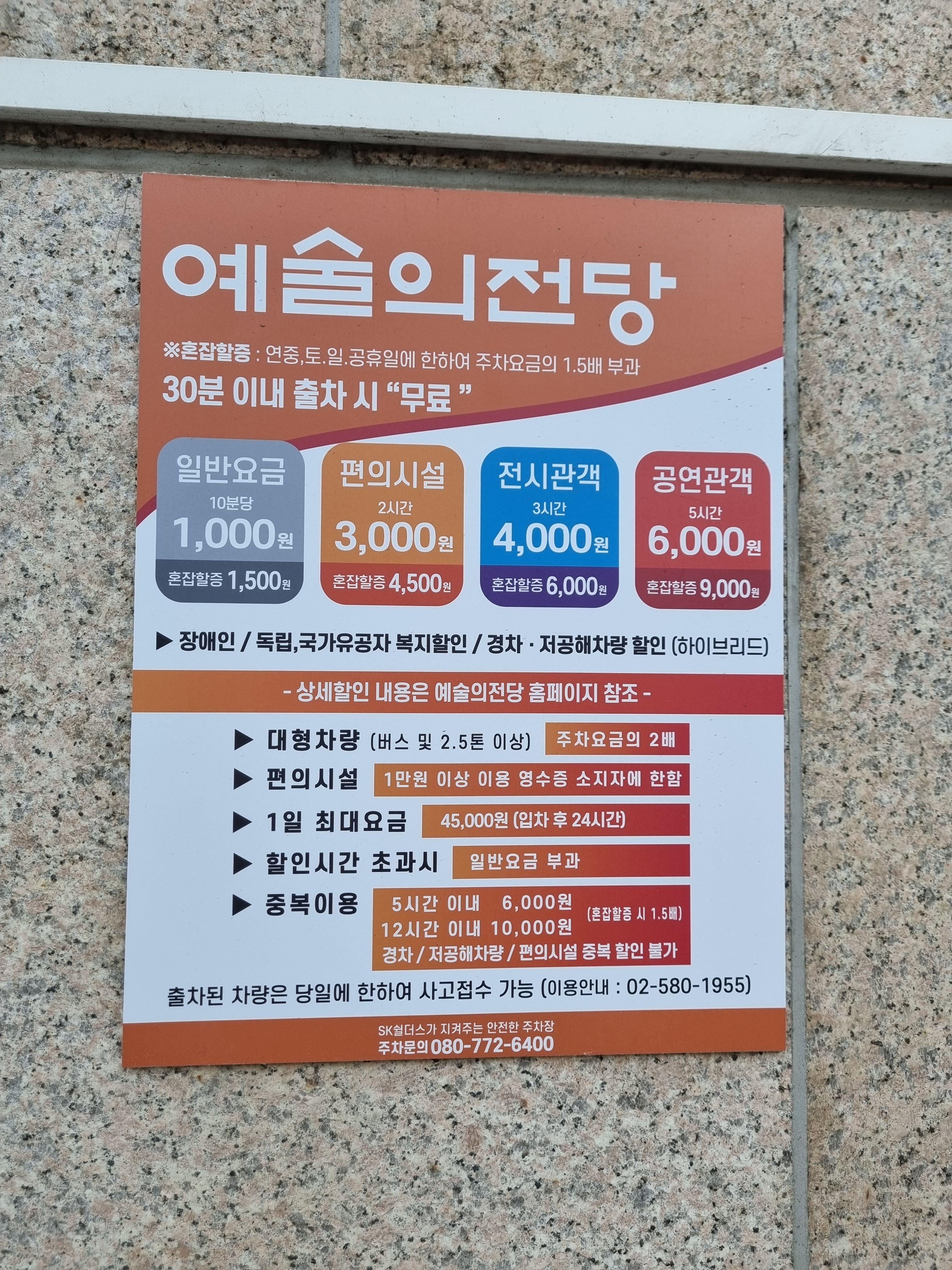 예술의 전당 주차는 일반요금 10분당 1,000원이고