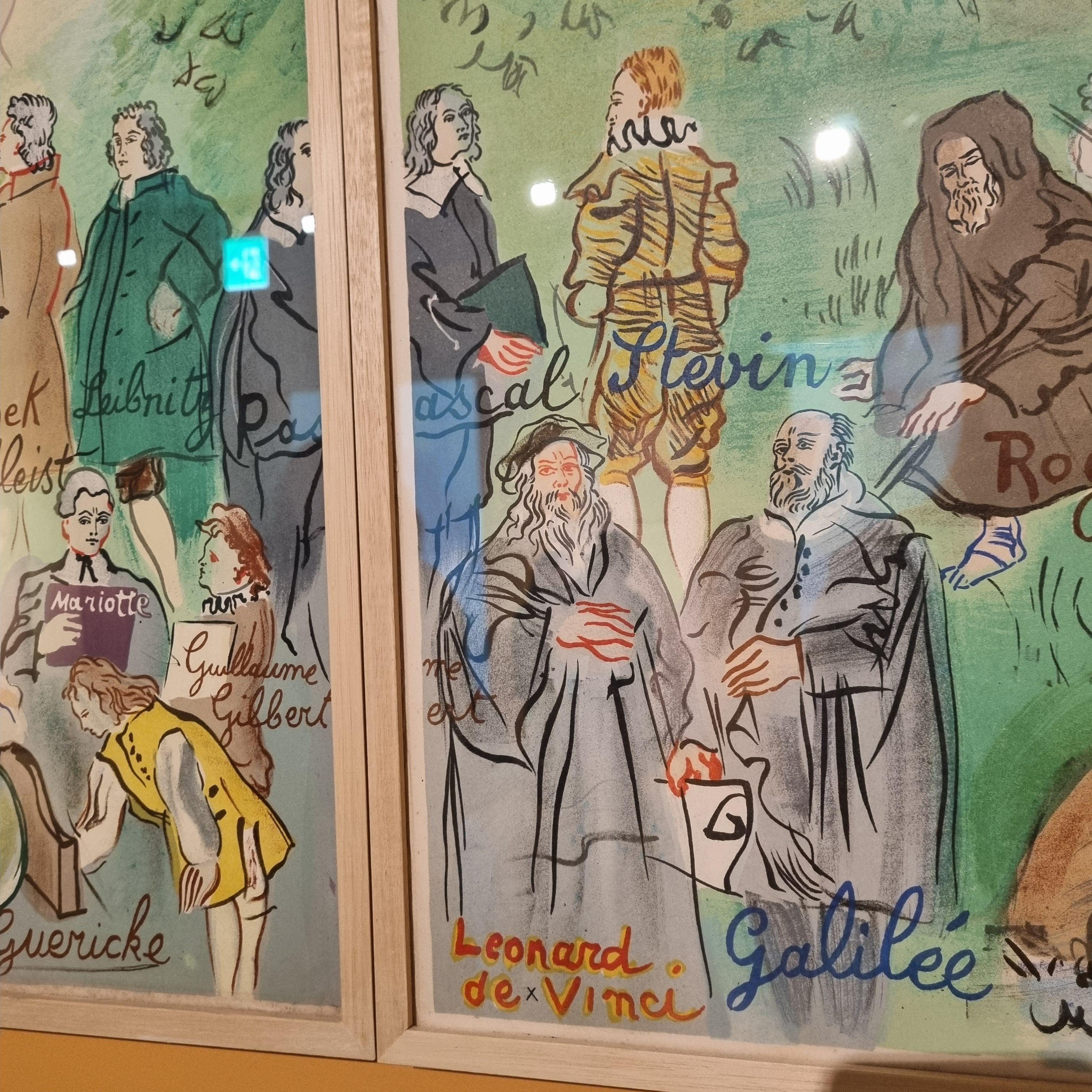 뒤피는 전기의 역사화인 이 작품에 파리의 유행과 미완의 프로젝트인 르부르제 공항터미널의 모습까지 담아냈어요.
