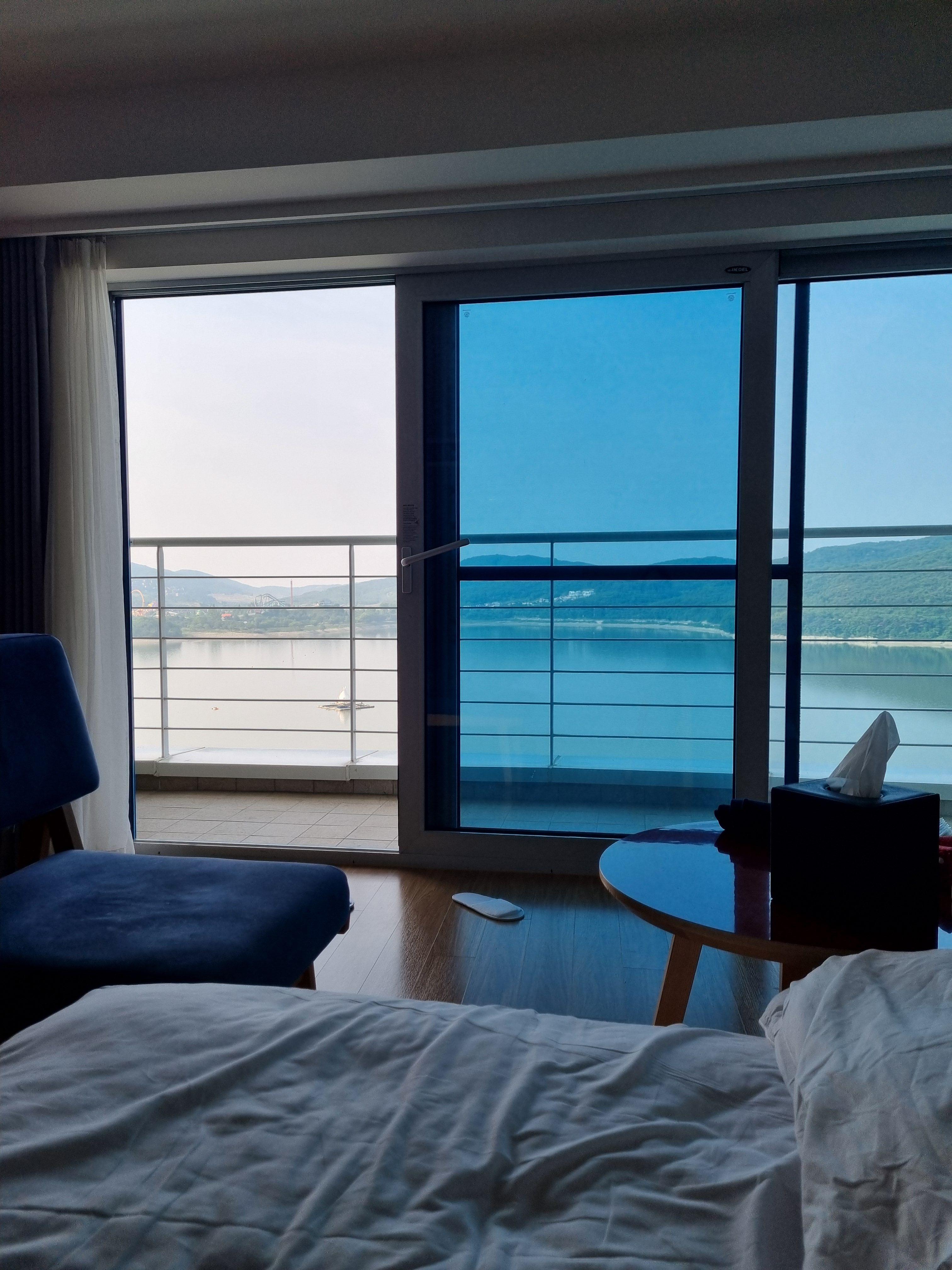 체크인하는 저녁에 들어와서 보지 못했던 차분한 호수뷰를 아침에 보며 일어났습니다.