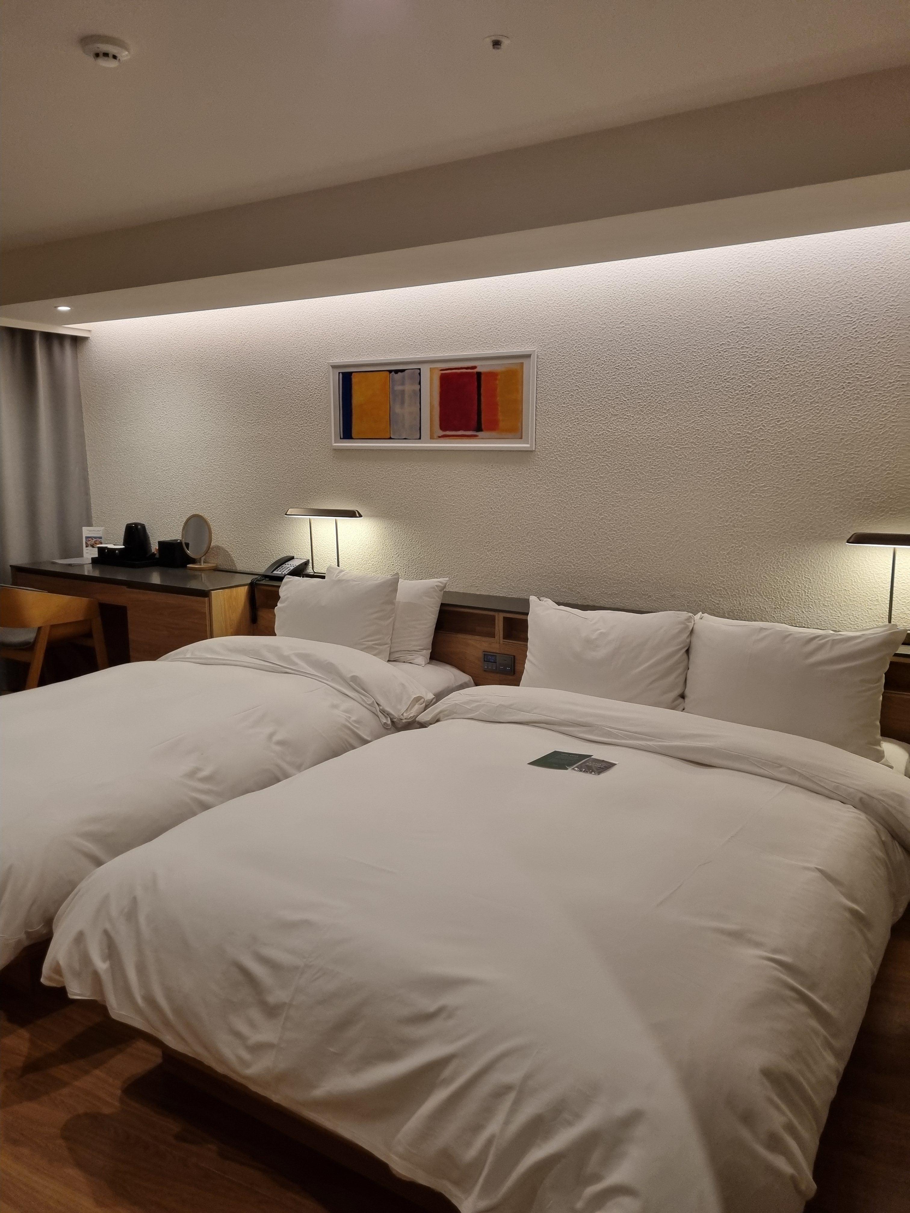 저희는 디럭스 트윈룸으로 예약했고, 배정받은 9층으로 올라갔습니다.