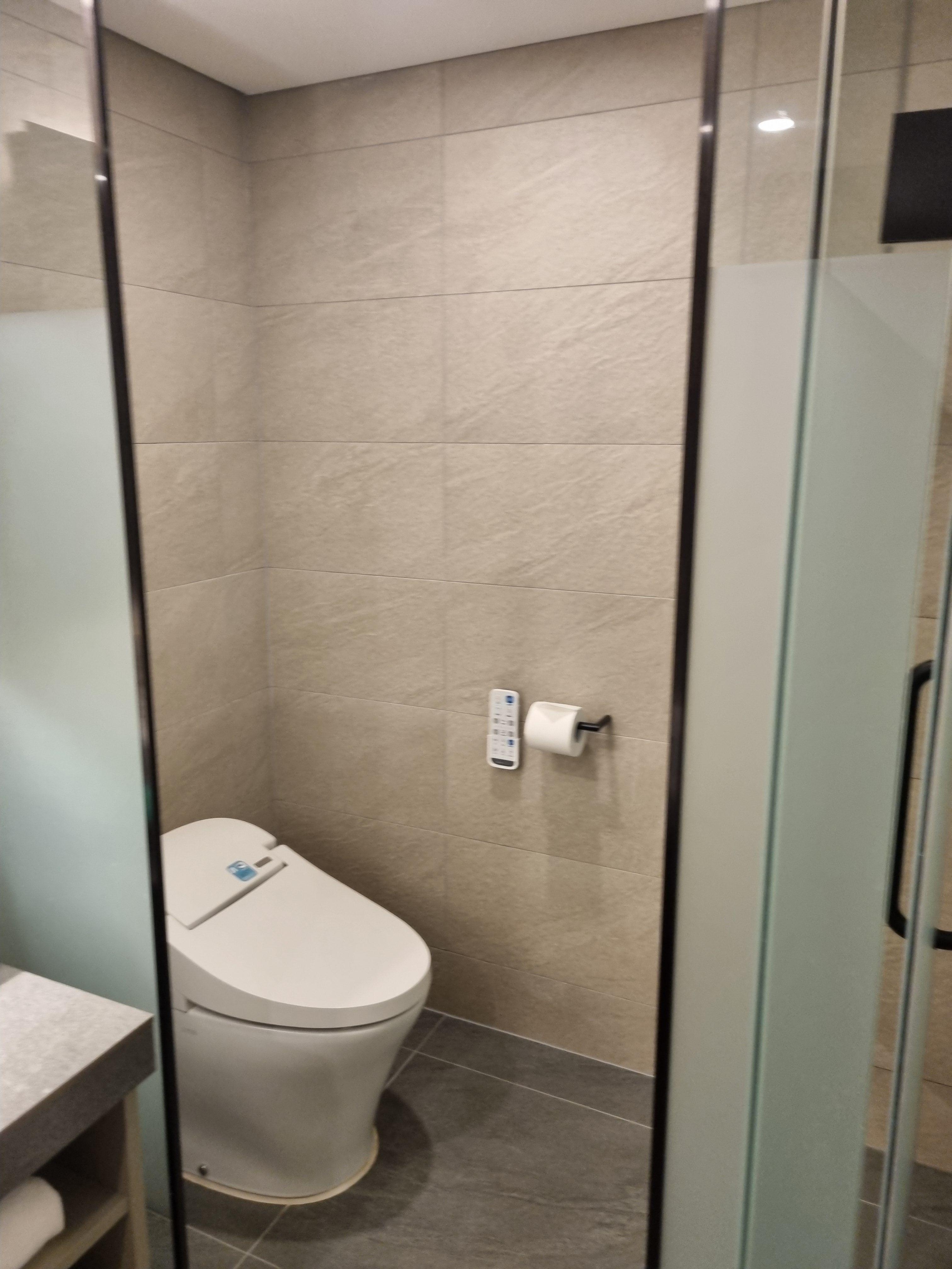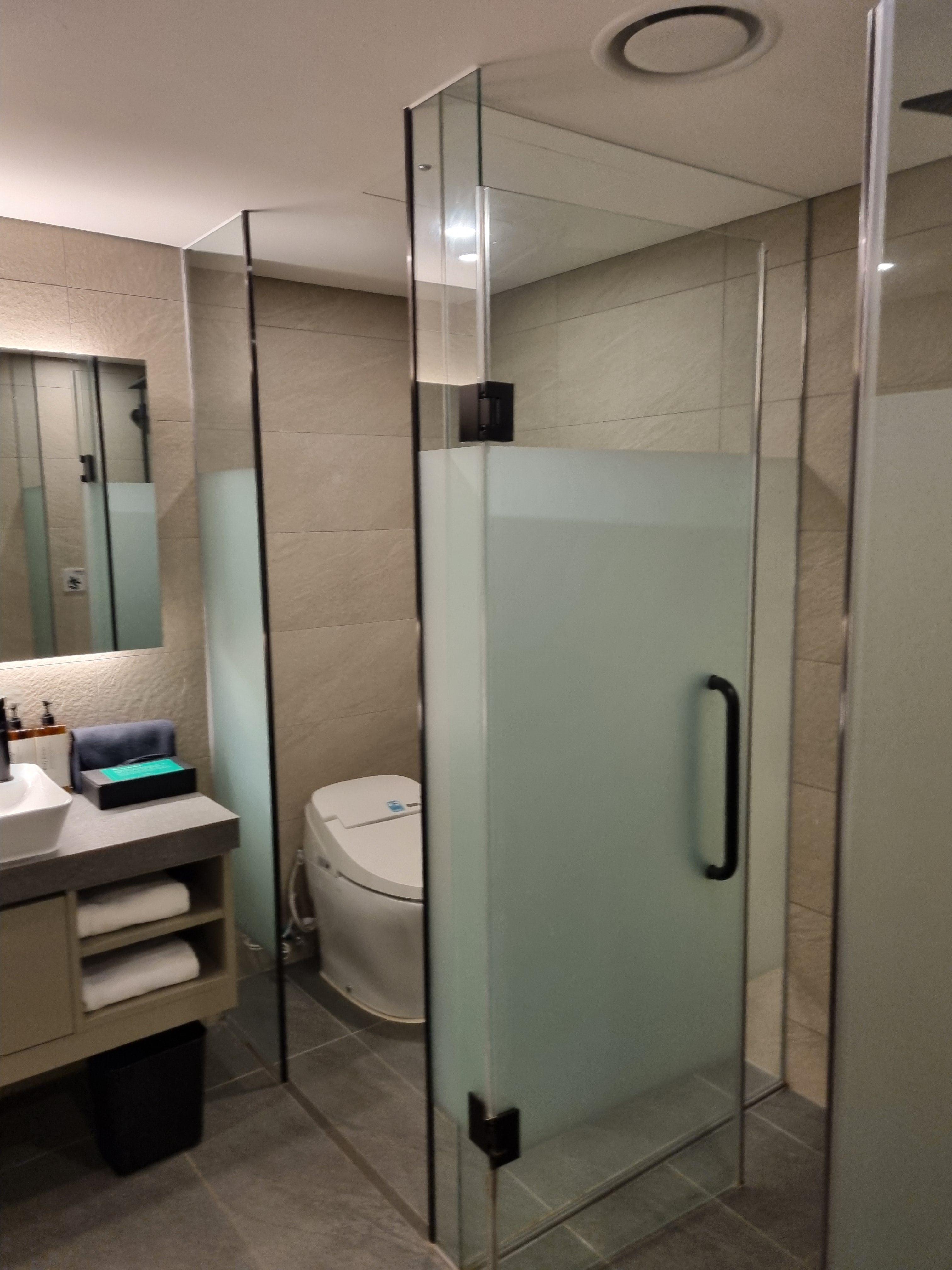 다 분리되어 좋아보였는데 변기있는 곳에 문이 없어서(문을 달 공간이 없어보임) 욕실을 두명이 같이 쓰기엔 어려워보였습니다.