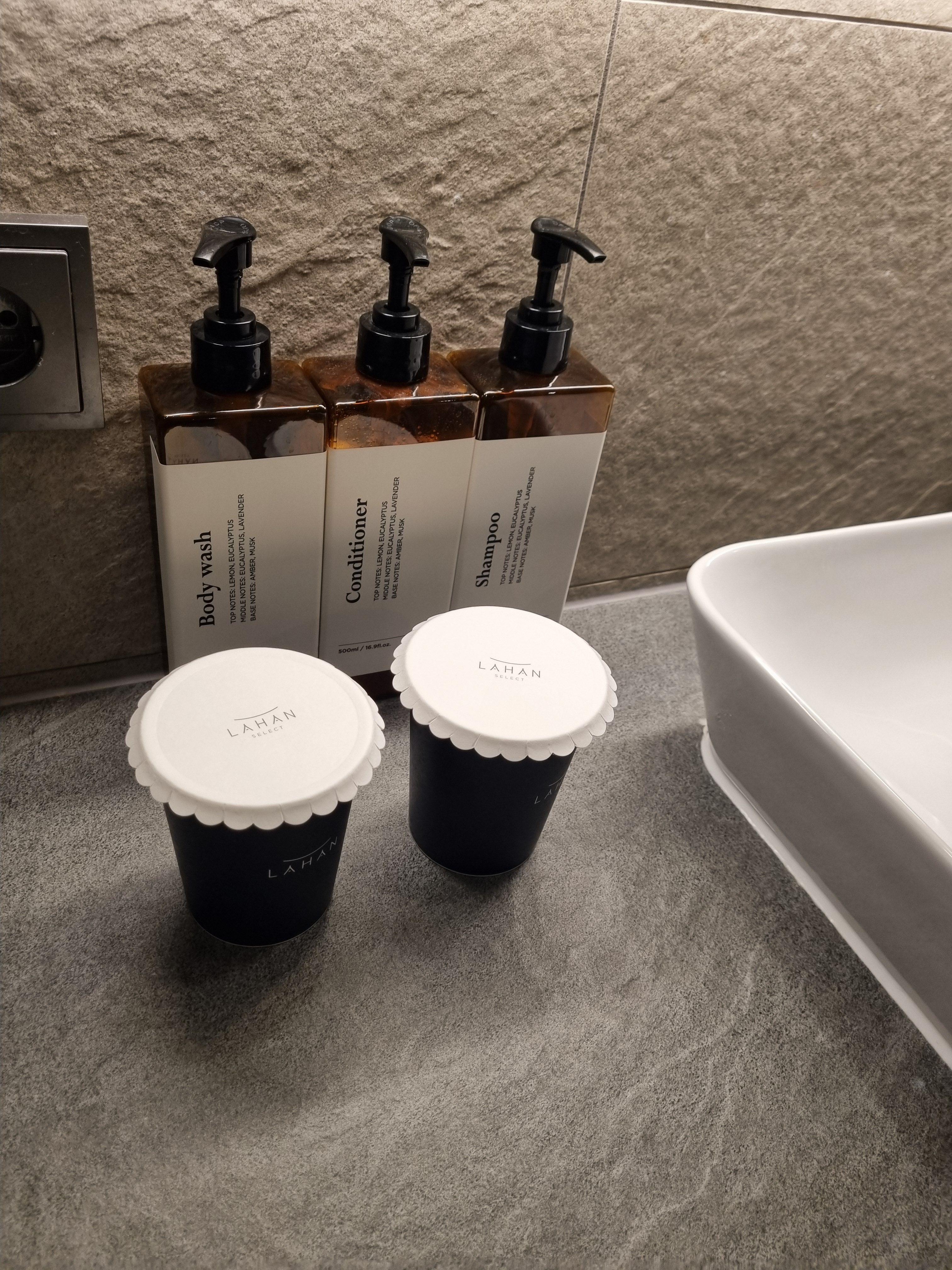 욕실 어매니티는 바디워시, 샴푸, 컨디셔너, 핸드 솝, 바디 로션, 드라이기 다 있습니다.