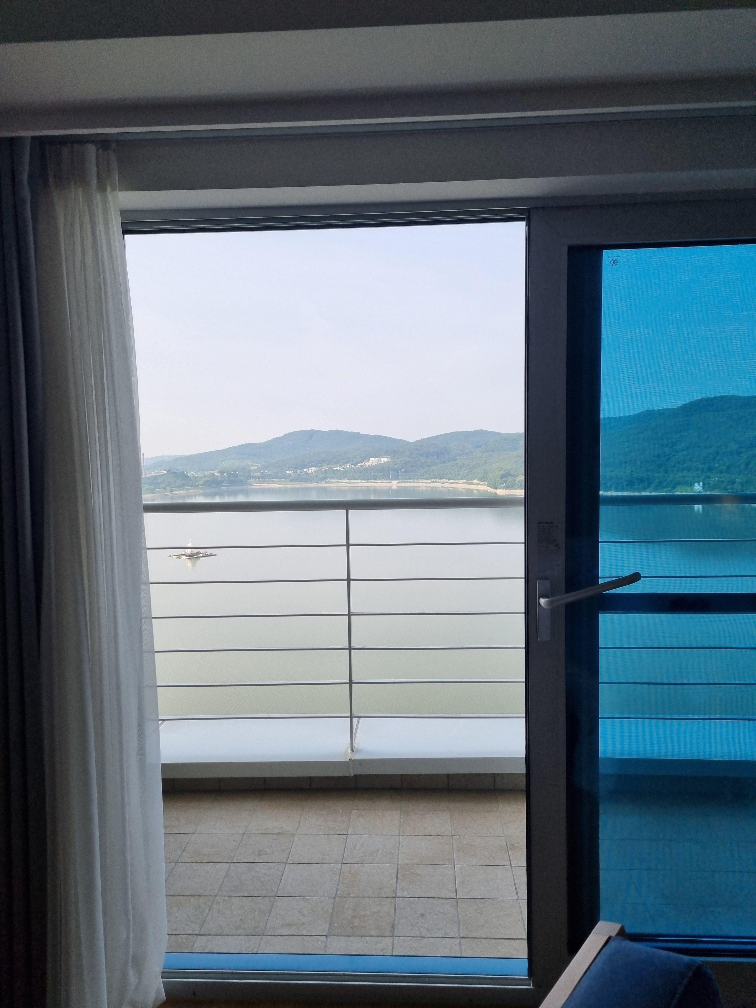 놀다가 밤에 체크인해서 베란다에서 보이는 호수뷰입니다.
