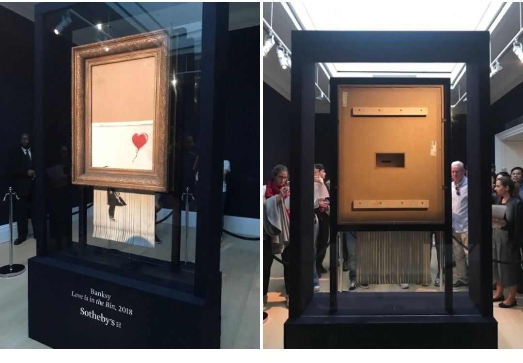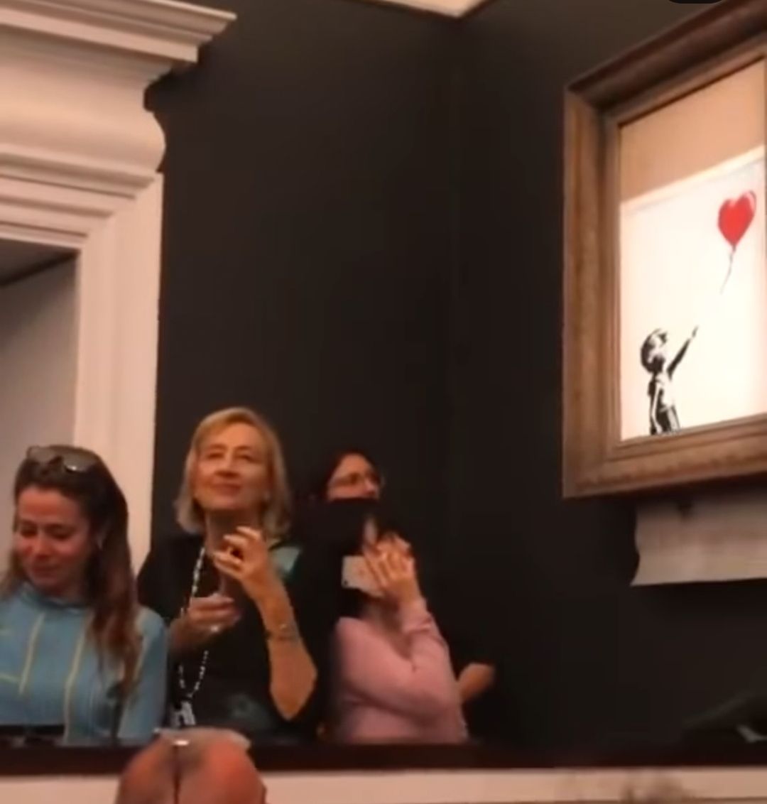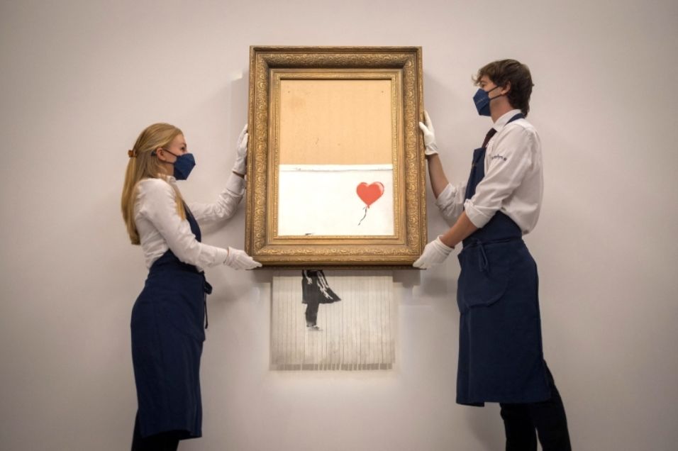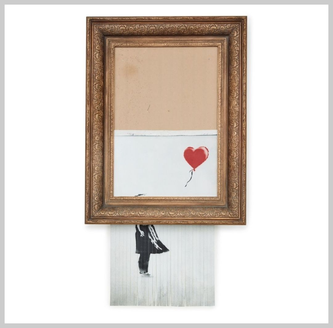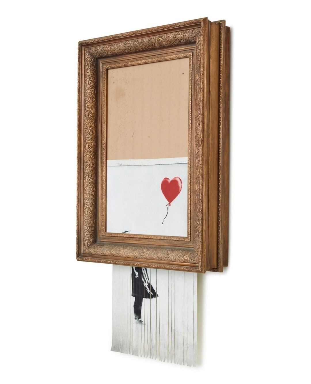 이 작품의 원제는 '풍선과 소녀'(Girl with the Balloon)로, 2018년 영국 런전 소더비 경매에서 작품이 15억에 낙찰되자마자 뱅크시가 액자 내부에 숨겨둔 파쇄기를 작동시켜서 작품을 스스로 찢는 해프닝을 벌였던 해프닝이 있었죠.
