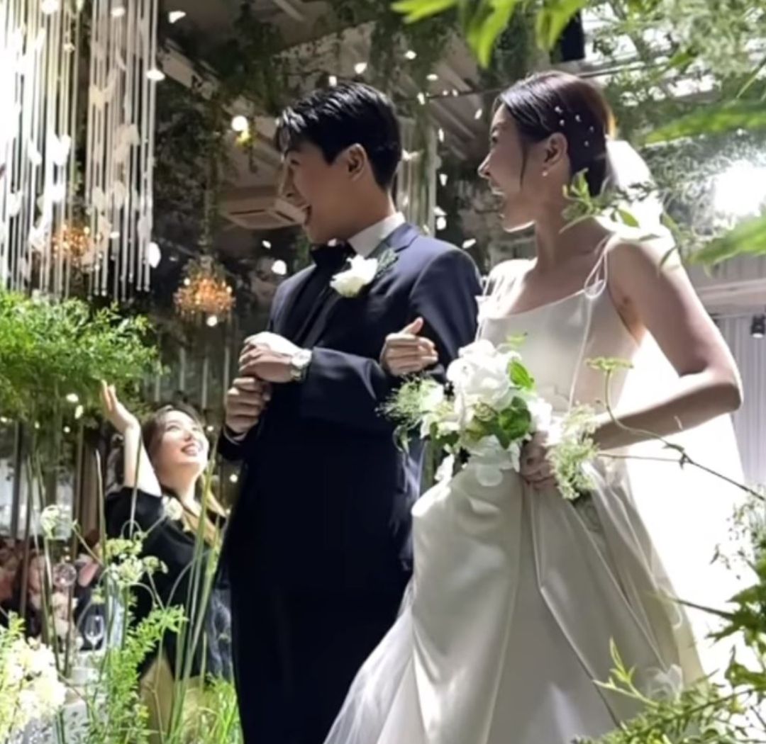 결혼식날 주례자는 따로 없이 김일중 아나운서가 사회를 맡았고, 두 사람의 절친한 친구인 가수 우디가 축가를 불렀습니다.