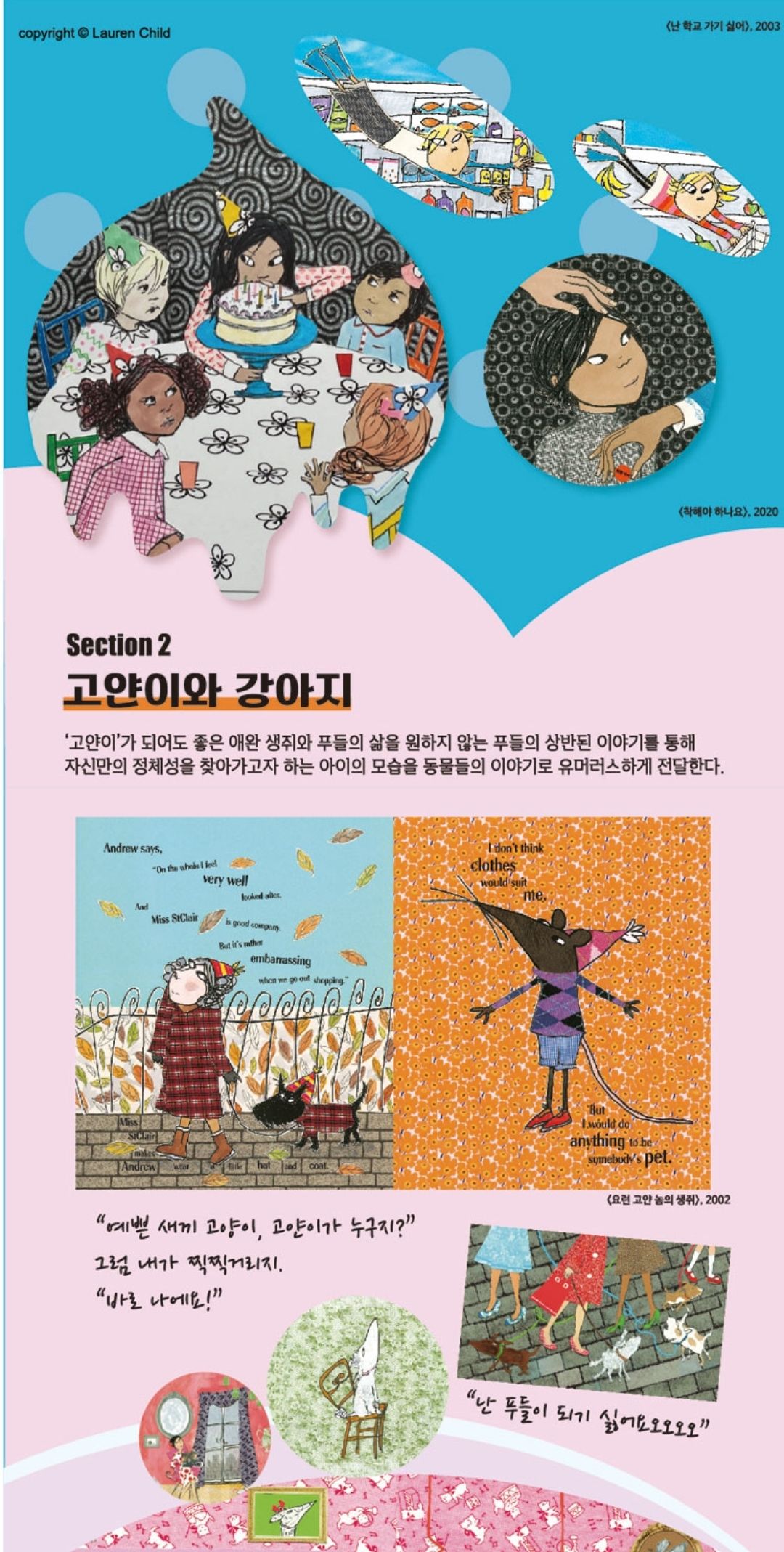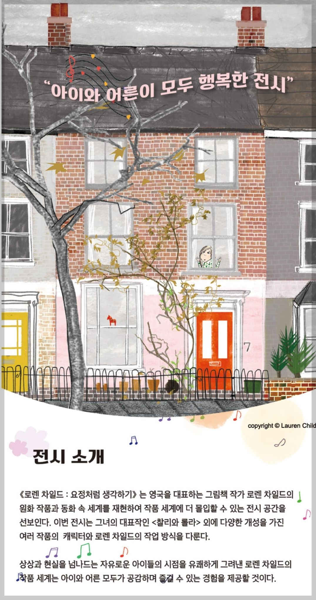 이번 전시는 그녀의 대표작인 <찰리와 롤라>외에 다양한 개성을 가진 여러 작품의 캐릭터와 로렌 차일드의 작업 방식을 다룹니다.