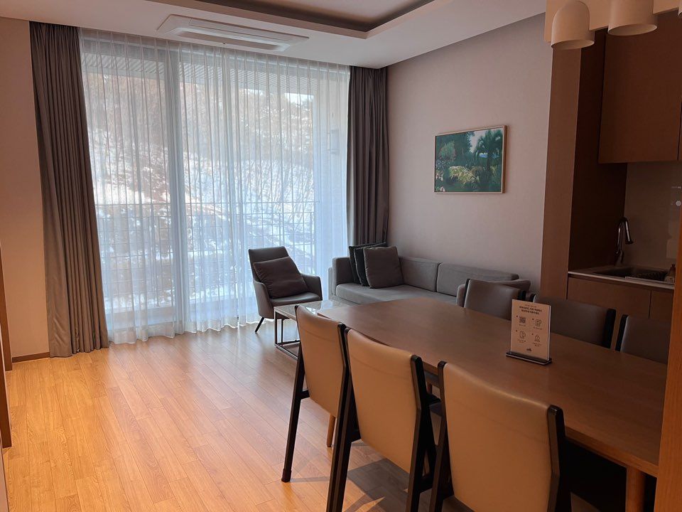 거실과 침실 두개, 욕실 2개로 구성되어 있어요.(온돌방이 있는 객실도 있음)