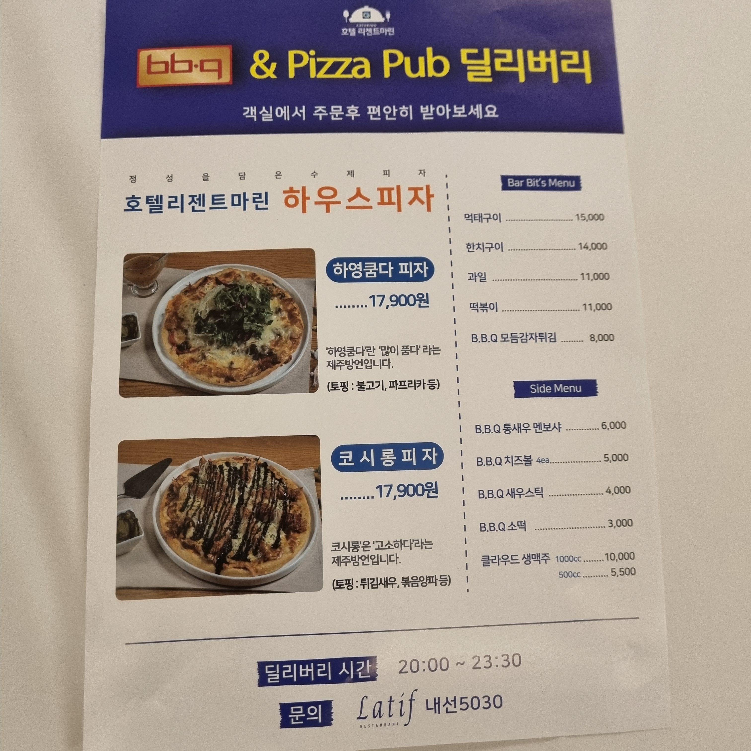 리젠트마린제주 호텔의 장점은 호텔 1층에 BBQ가 있어서 룸으로 맥주와 배달이 된다는 것이었어요.