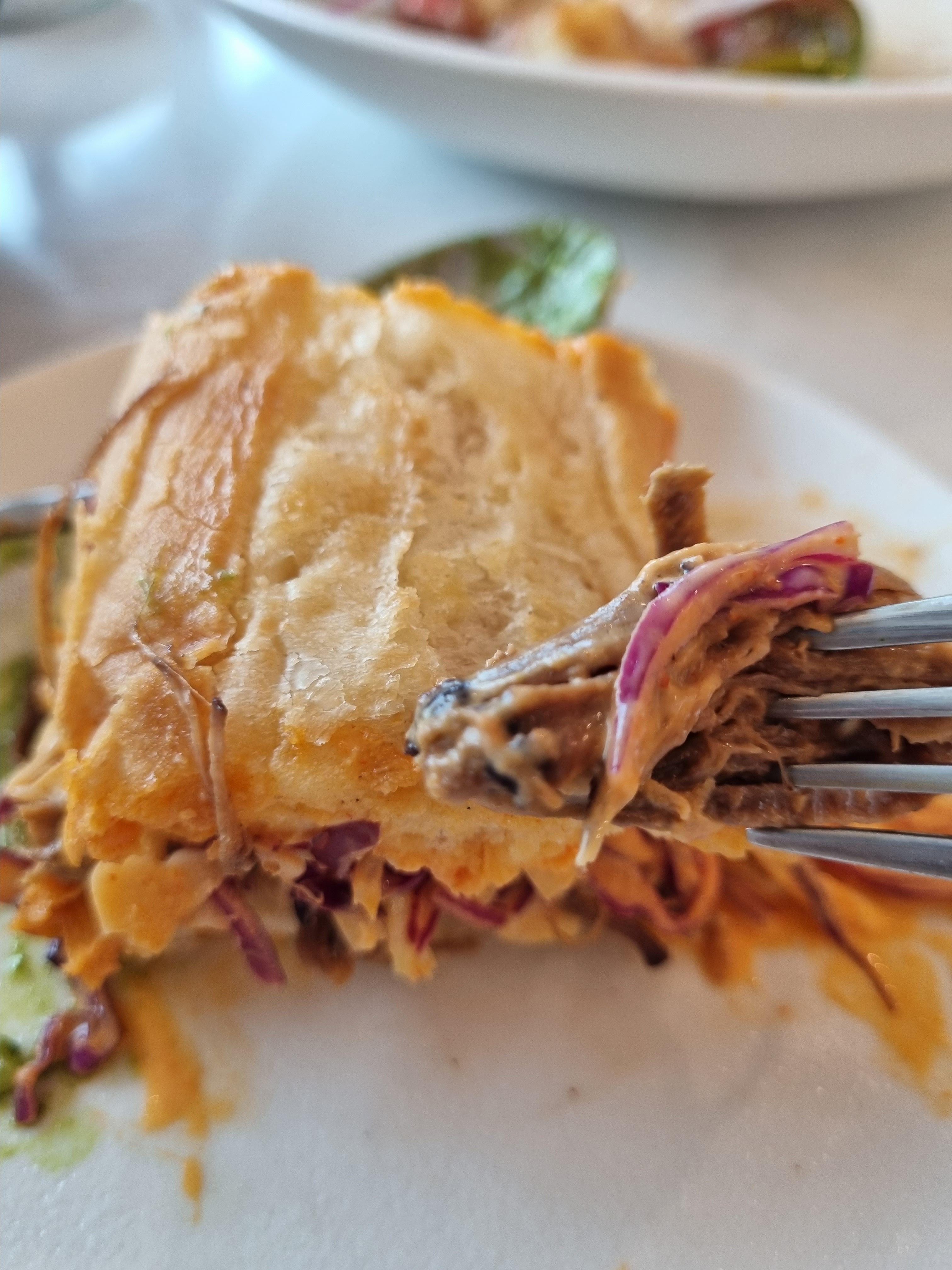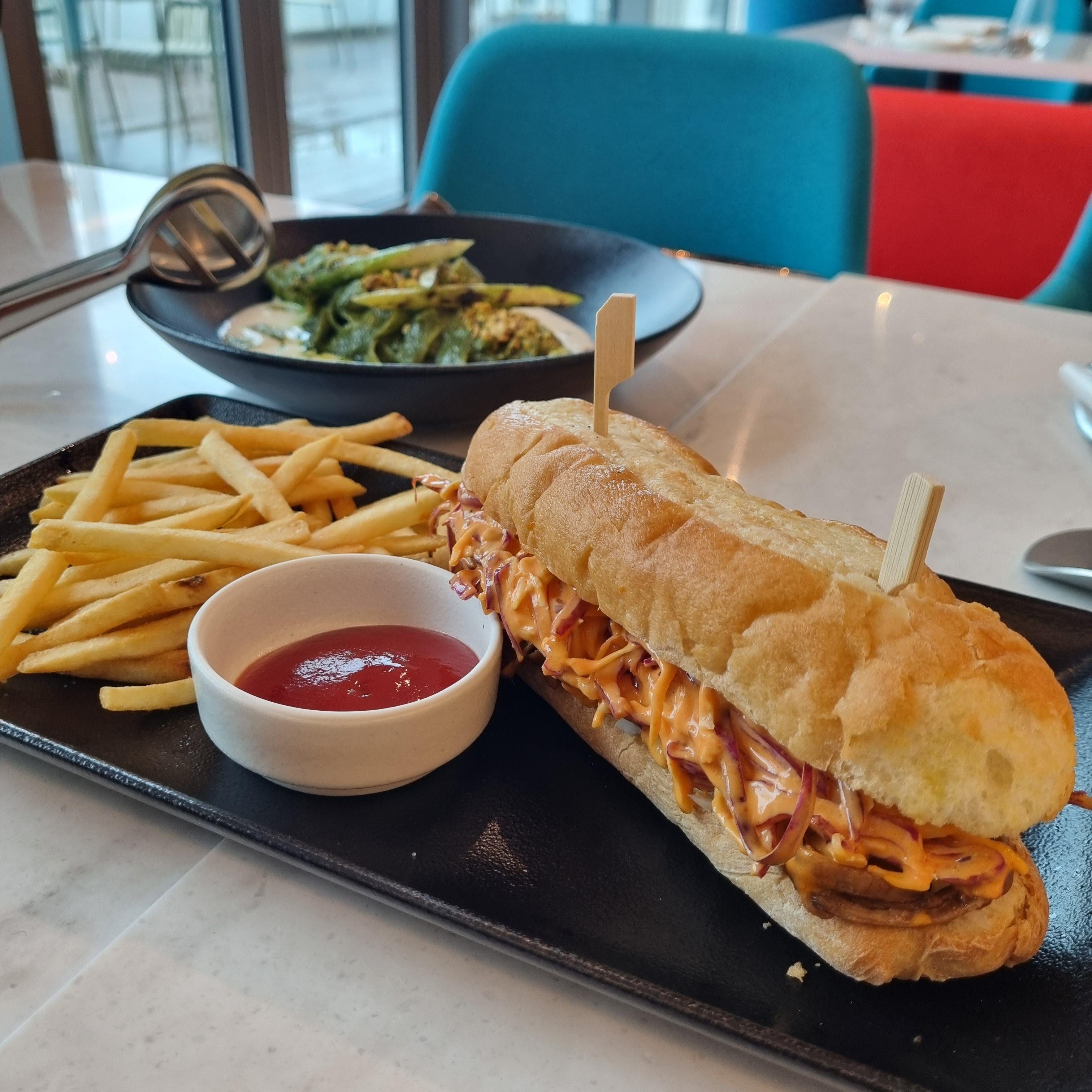 두 가지 메뉴가 동시에 나왔는데, 먼저 슈레드 비프 샌드위치입니다.