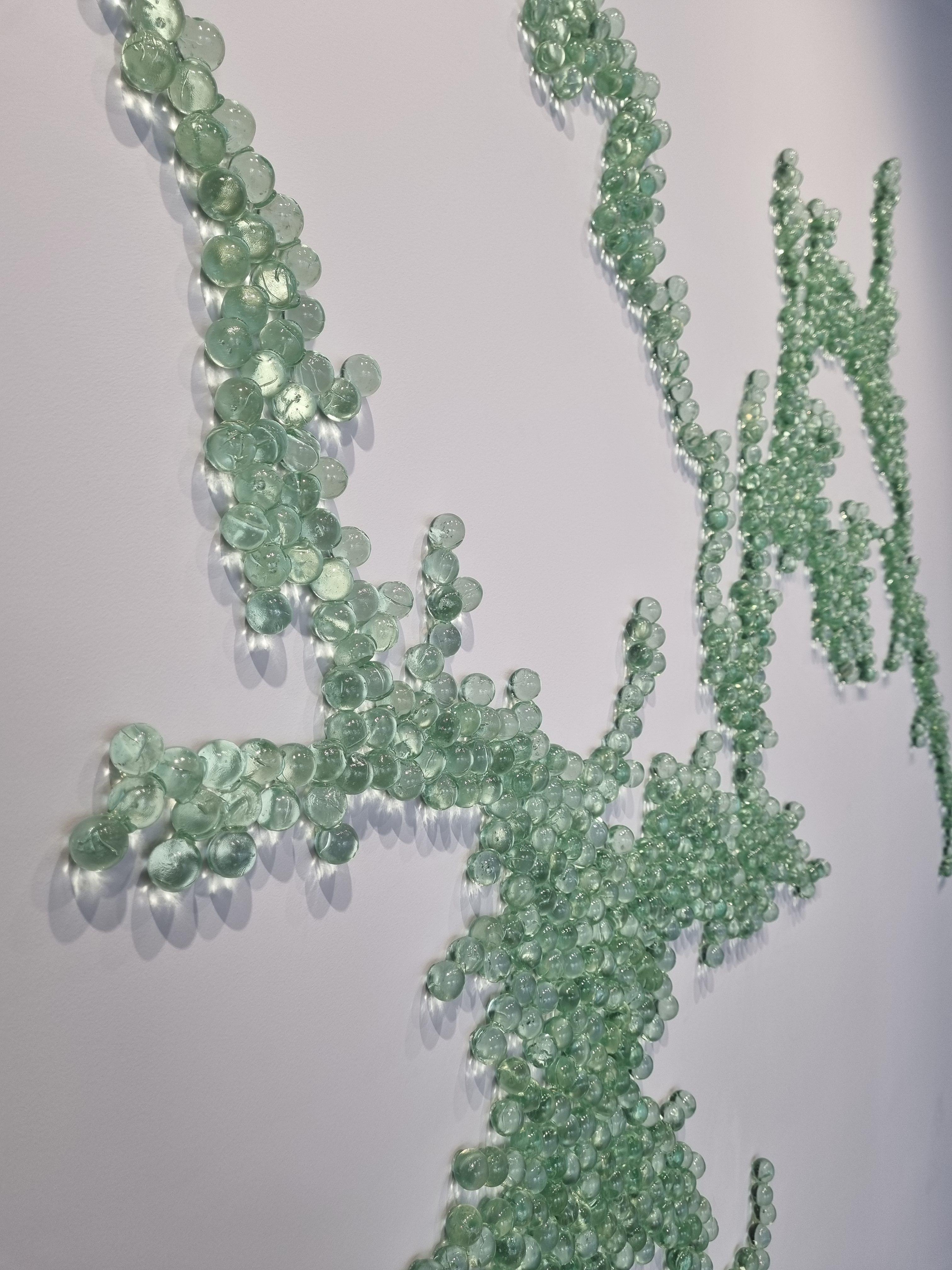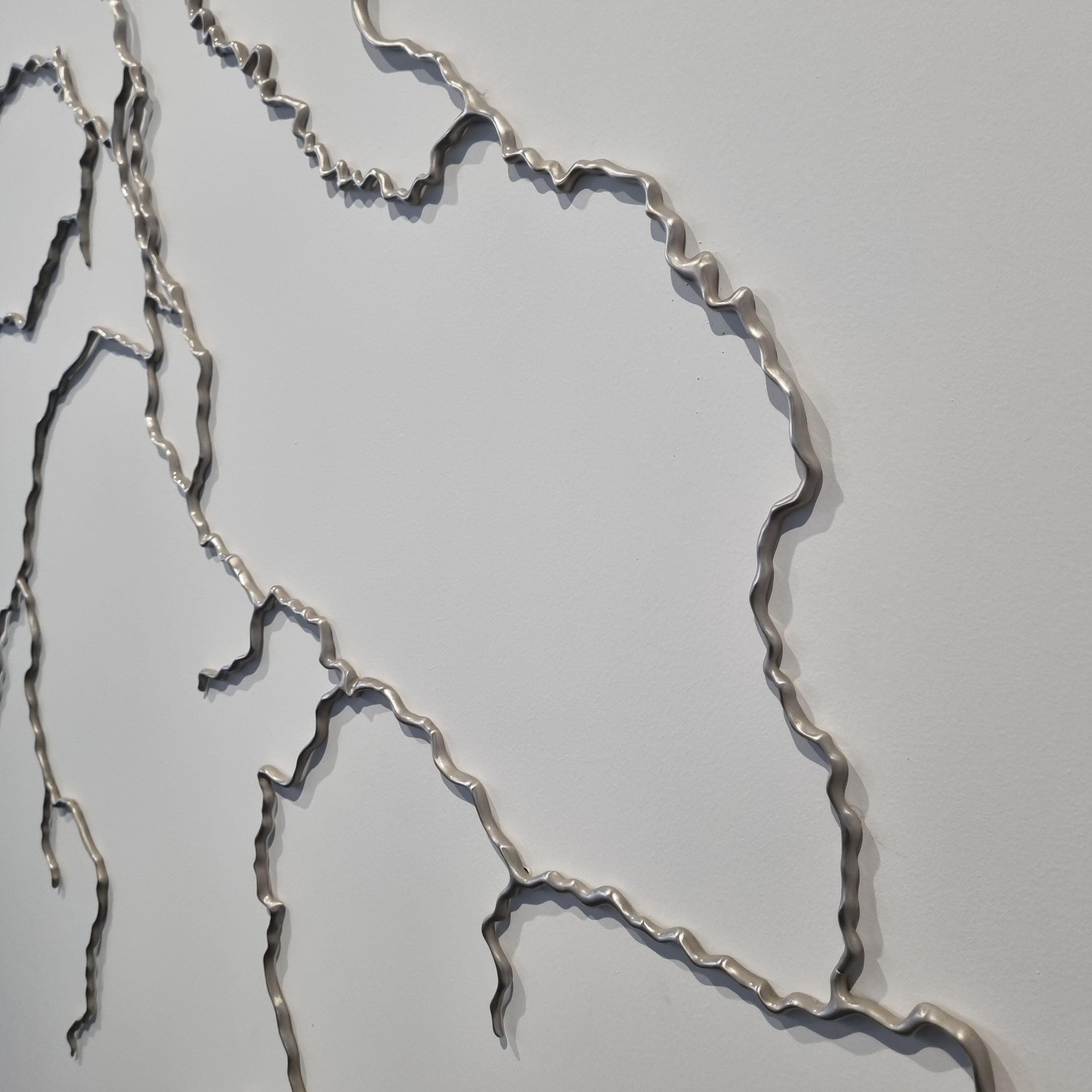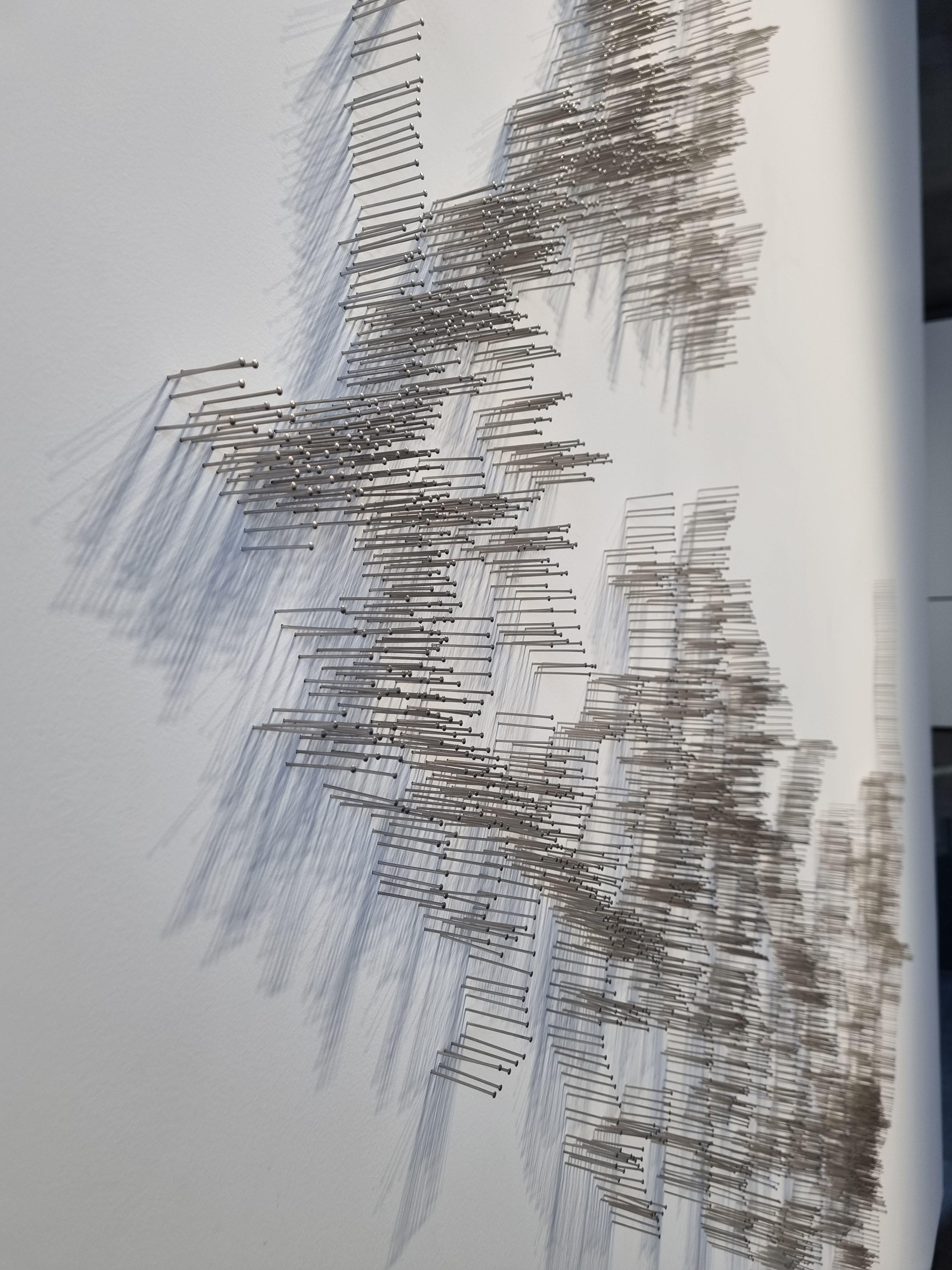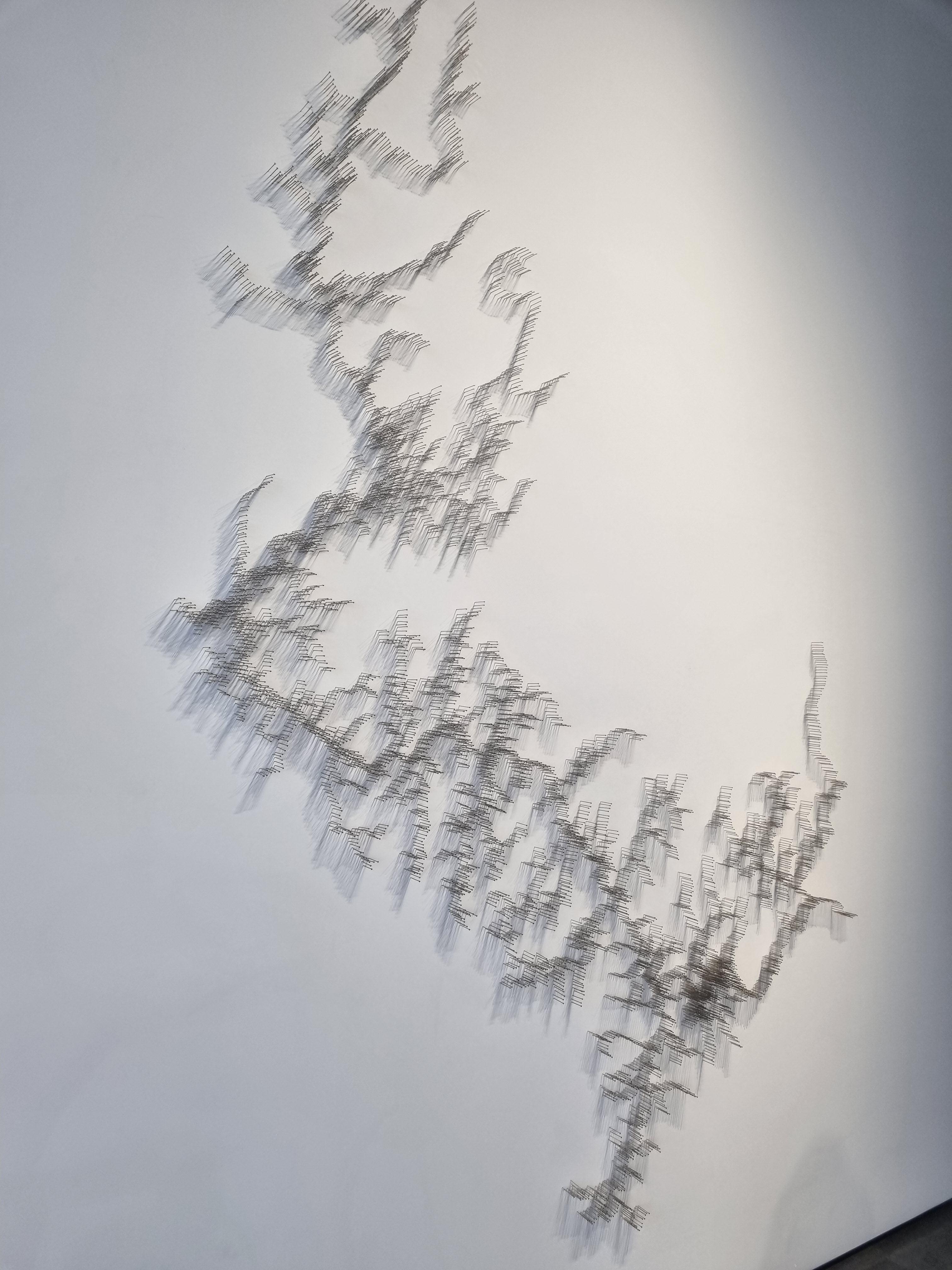 벽에 전시된 이 작품은 가까이서 보면 얇은 스테인레스 스틸 핀으로 촘촘히 꽂아서 한강 수로를 표현했고 물의 시각적, 질감적 특징을 담은 다른 작품이 하나 더 있는데
