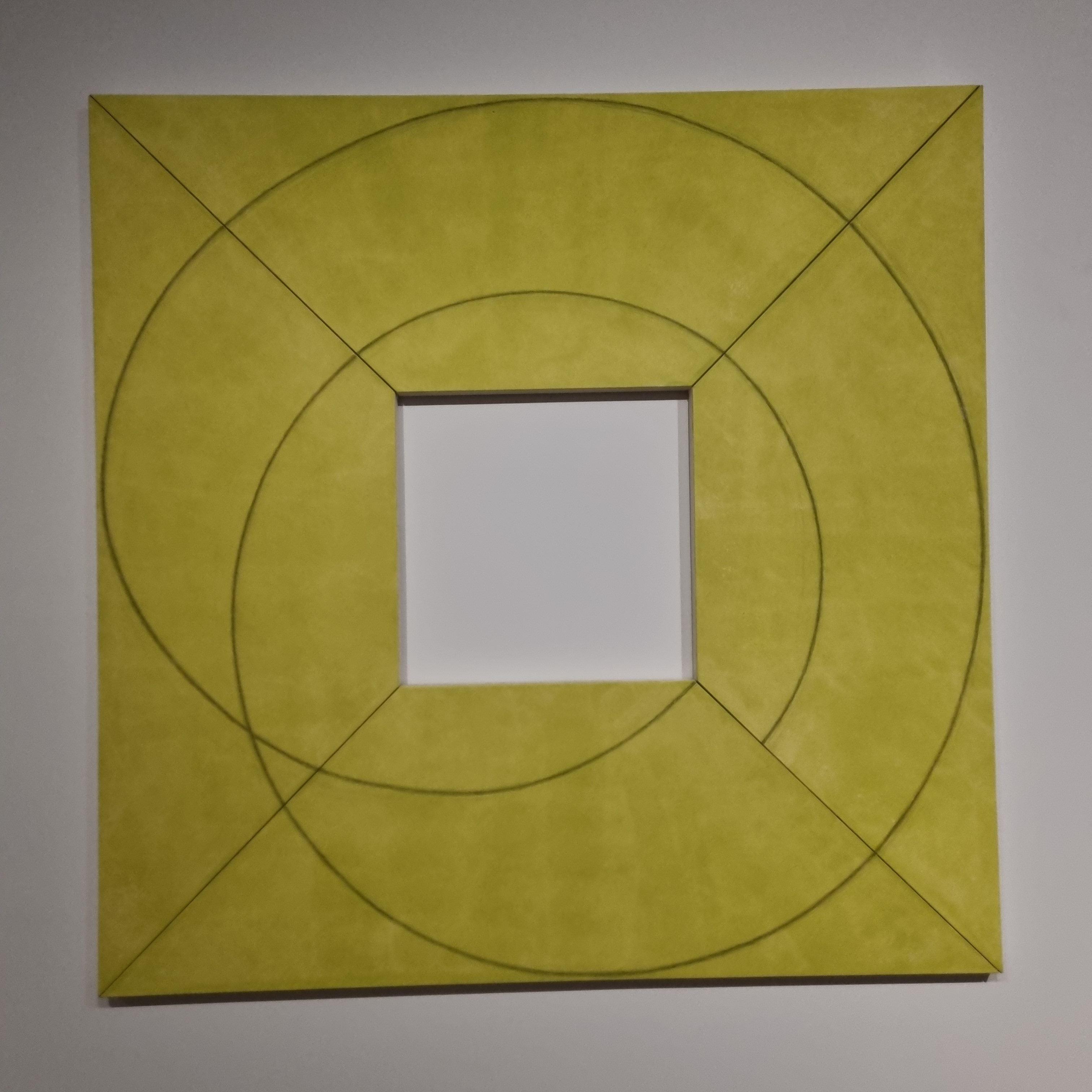 구도의 기본적인 요소들을 탐구하였으며 변형된 모양의 캔버스를 이용하여 기하학적 추상의 한계를 확장했습니다.