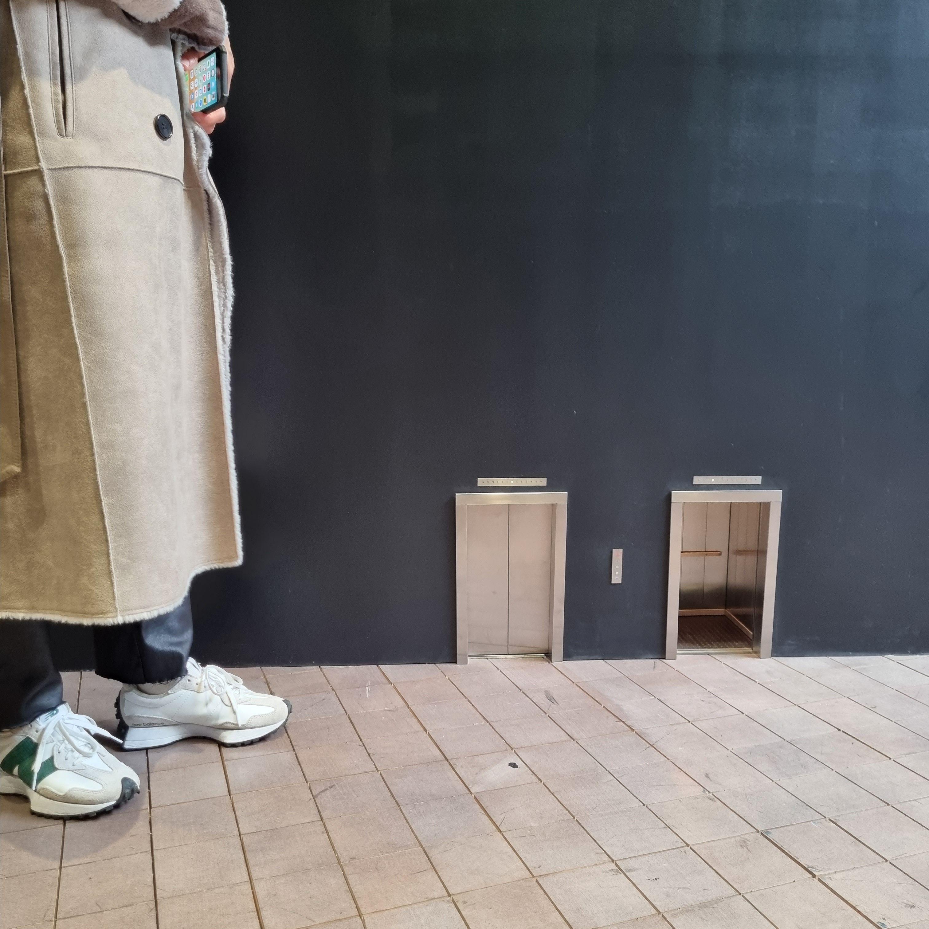 벽 한쪽에 저게 뭔가 싶지만 가까이 다가가서 보면 작은 엘레베이터입니다.