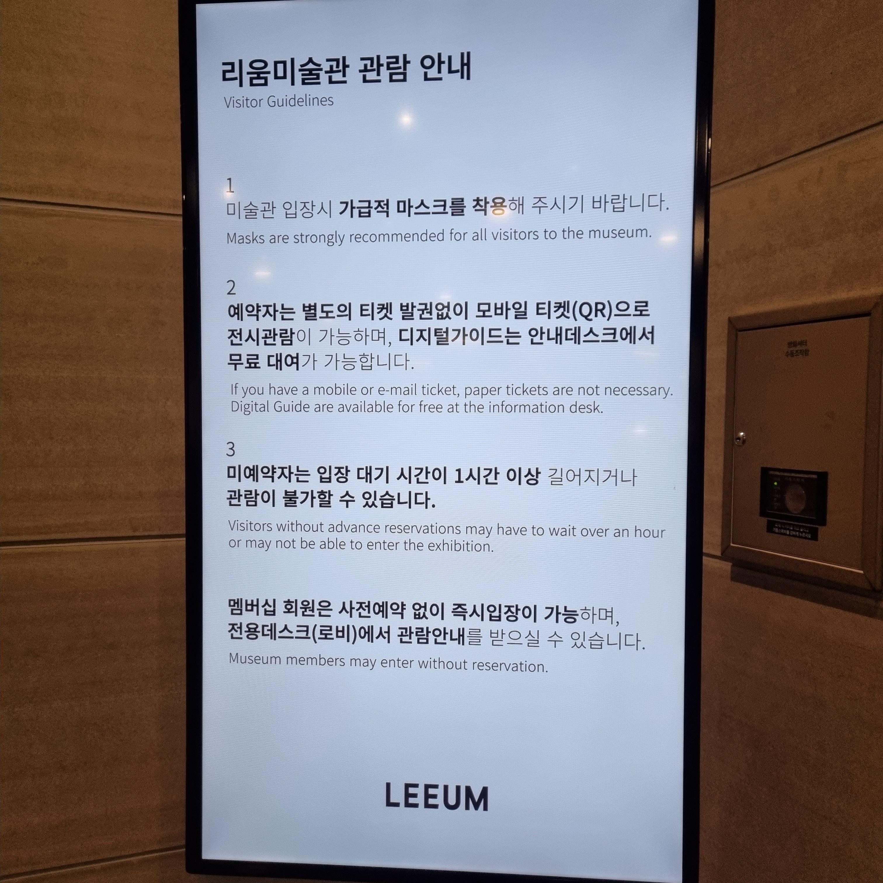 2월 14일부터는 미술관 내 관람객의 안전을 위해 현장발권을 하지 않고 100%사전 예약제로 변경운영한다고 하니 관람하실 분들은 참고하세요.