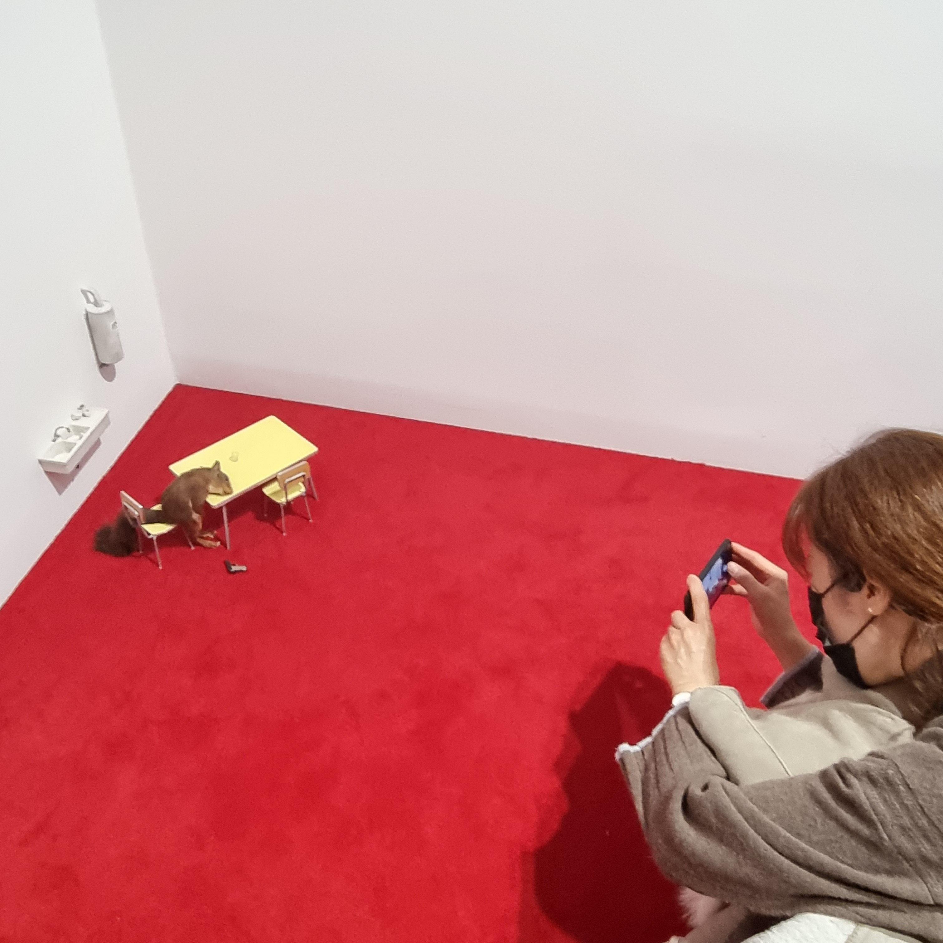 전시장 구석에 다람쥐와 그 크기에 알맞는 미니어처 살림이 아기자기하게 놓여있습니다.